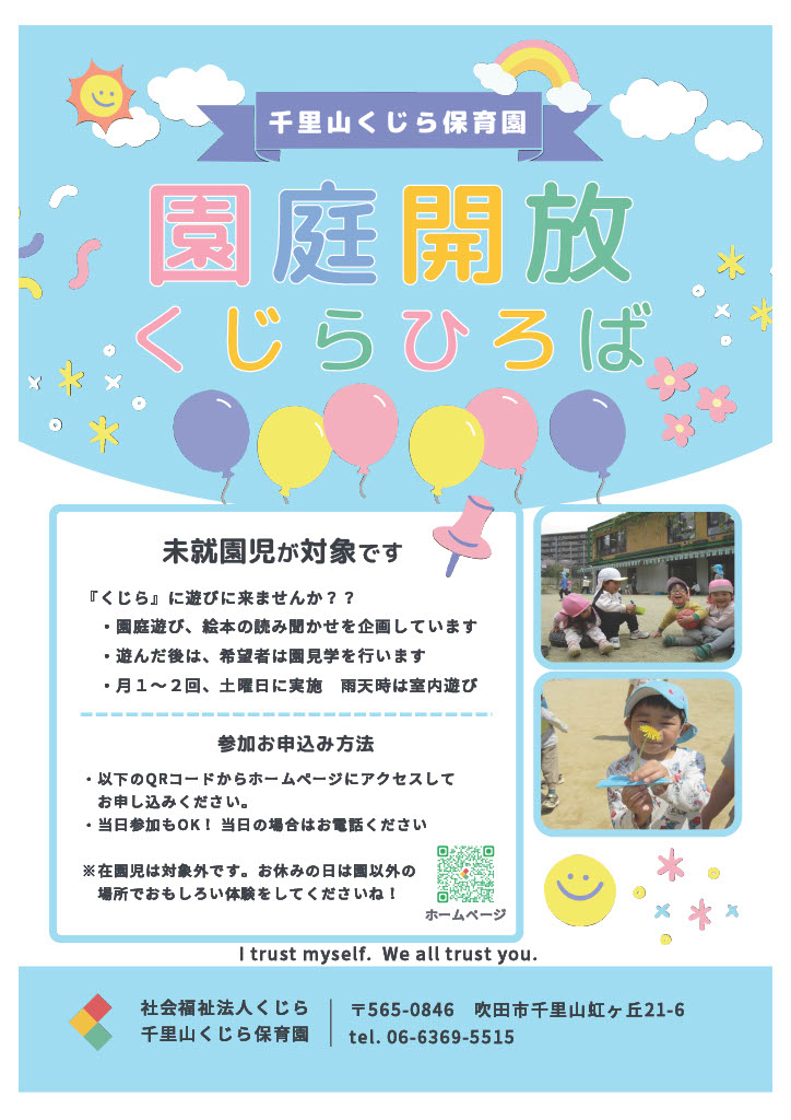 ・対象:千里山付近にお住まいの未就園児(保育園や幼稚園に通っていないお友達)
