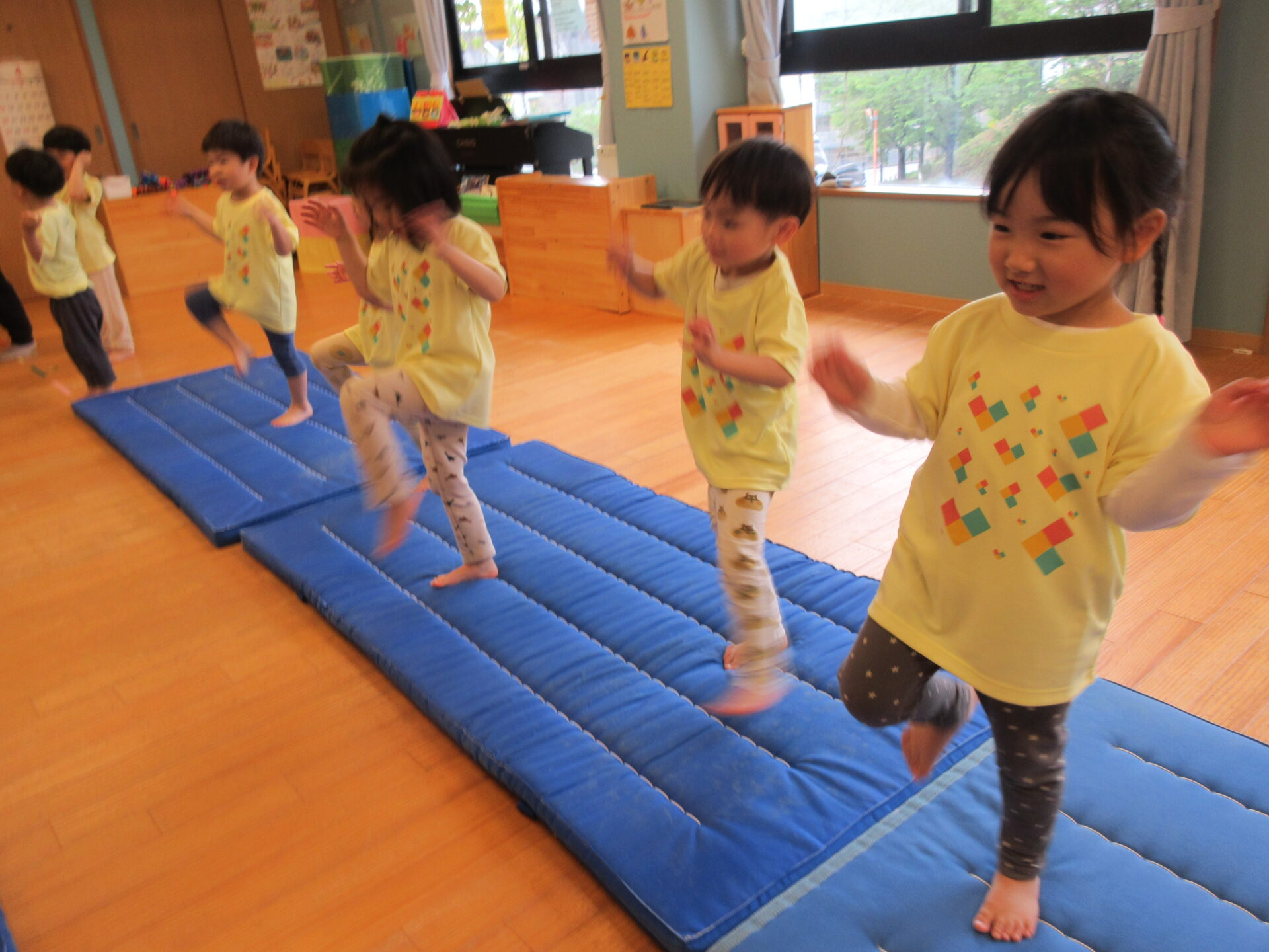 マットの上で片足立ち!!