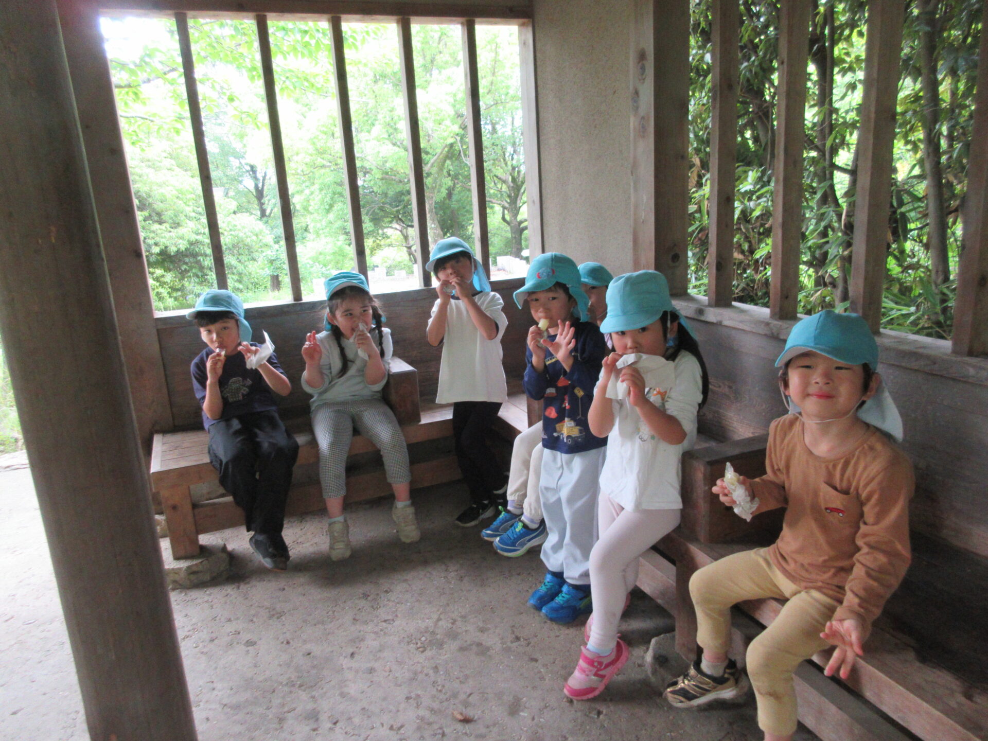 東屋の中で