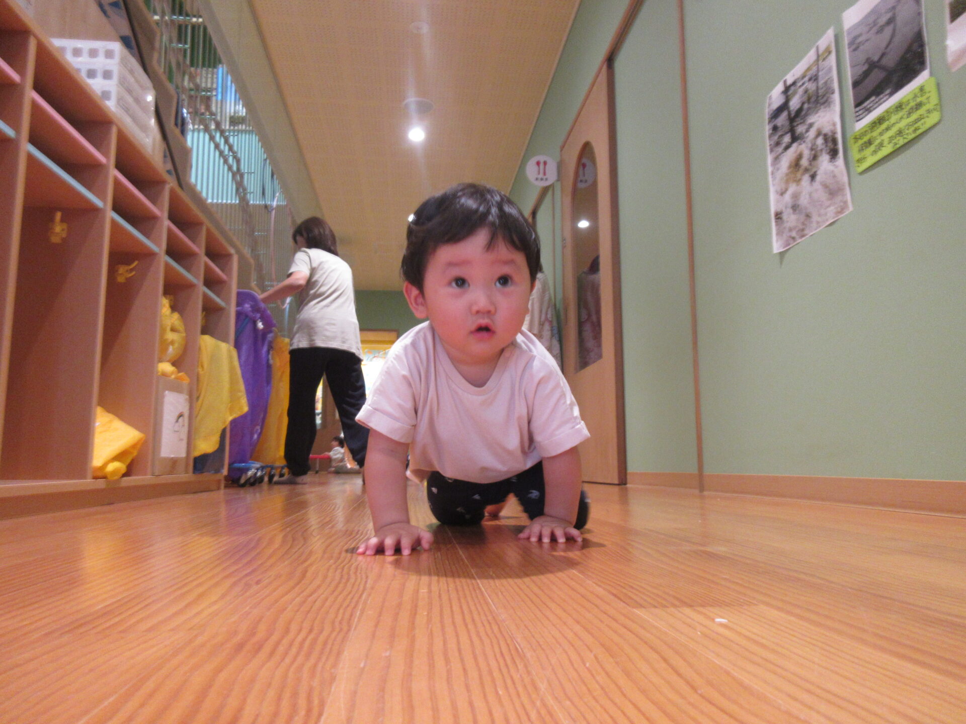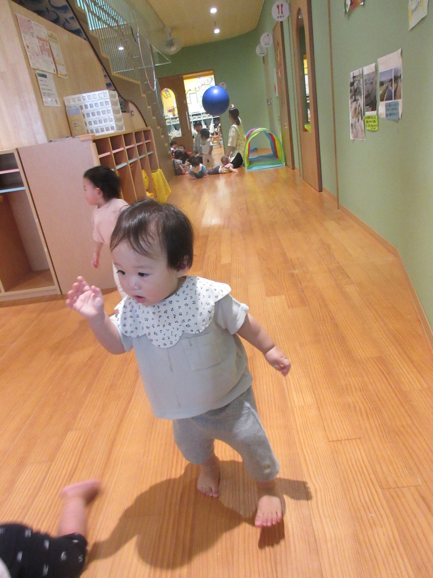 うみ組(0歳児)は廊下はいはい💨