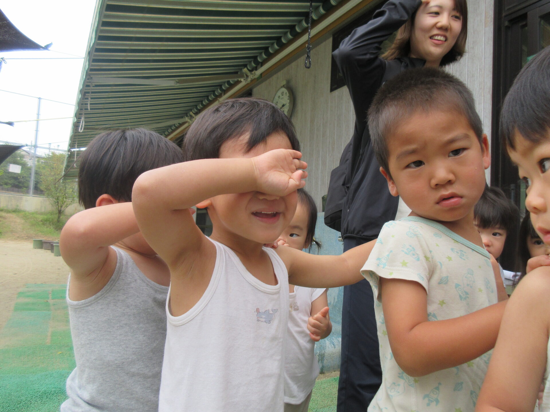 前の子がまねっこして