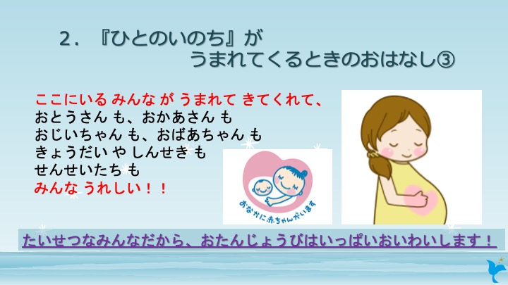 「人間は誰でも絶対に、お母さんから生まれたからお母さんを大事にしてね。もちろんお父さんもいたからだよ」