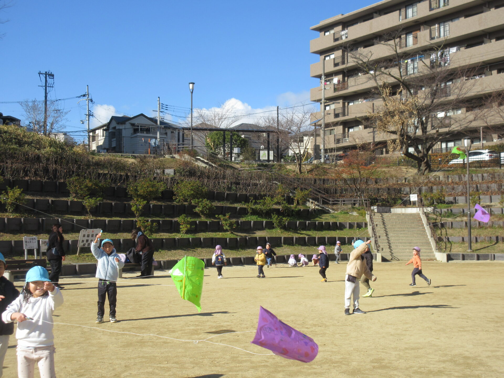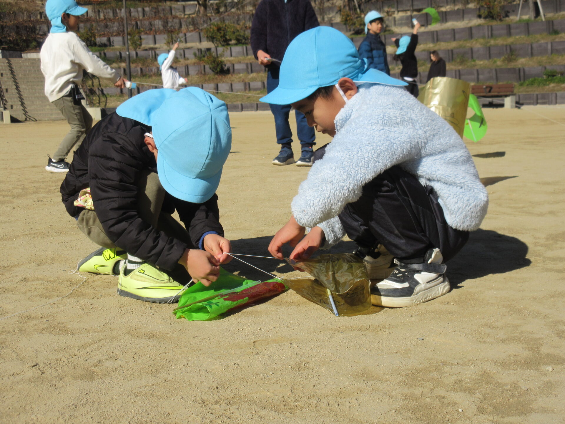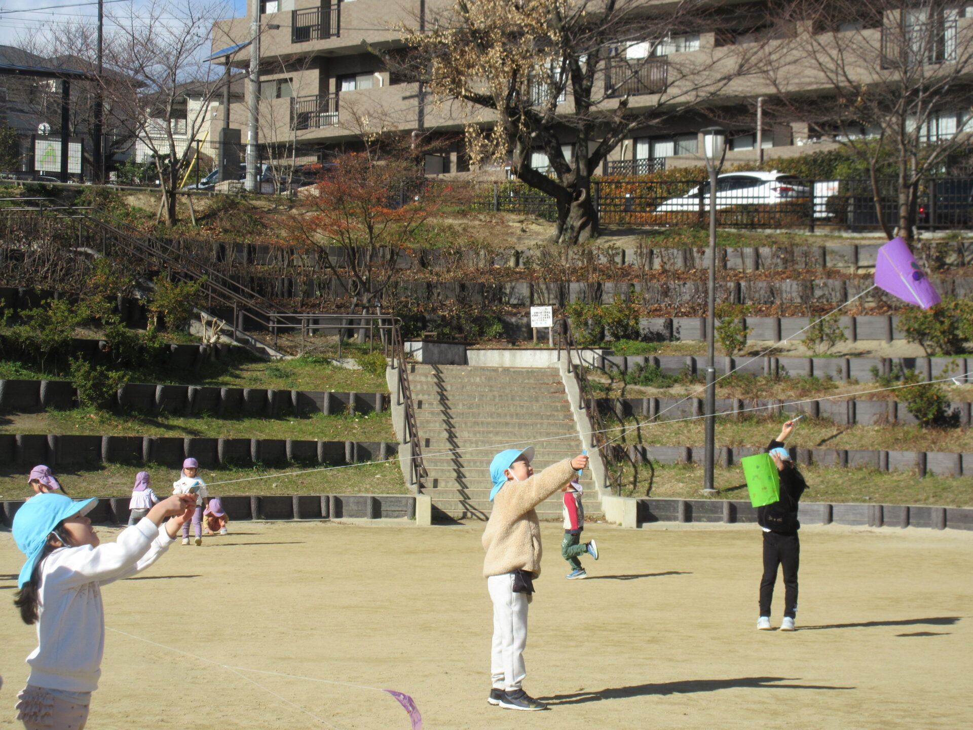 写真はくじら組(5歳児)の凧あげ