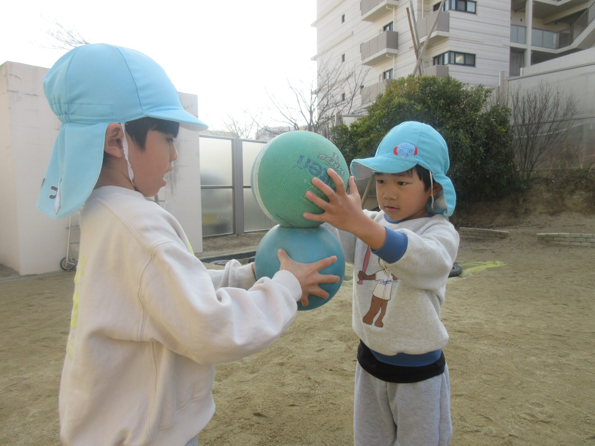 ボールの上にボールを乗せて~
