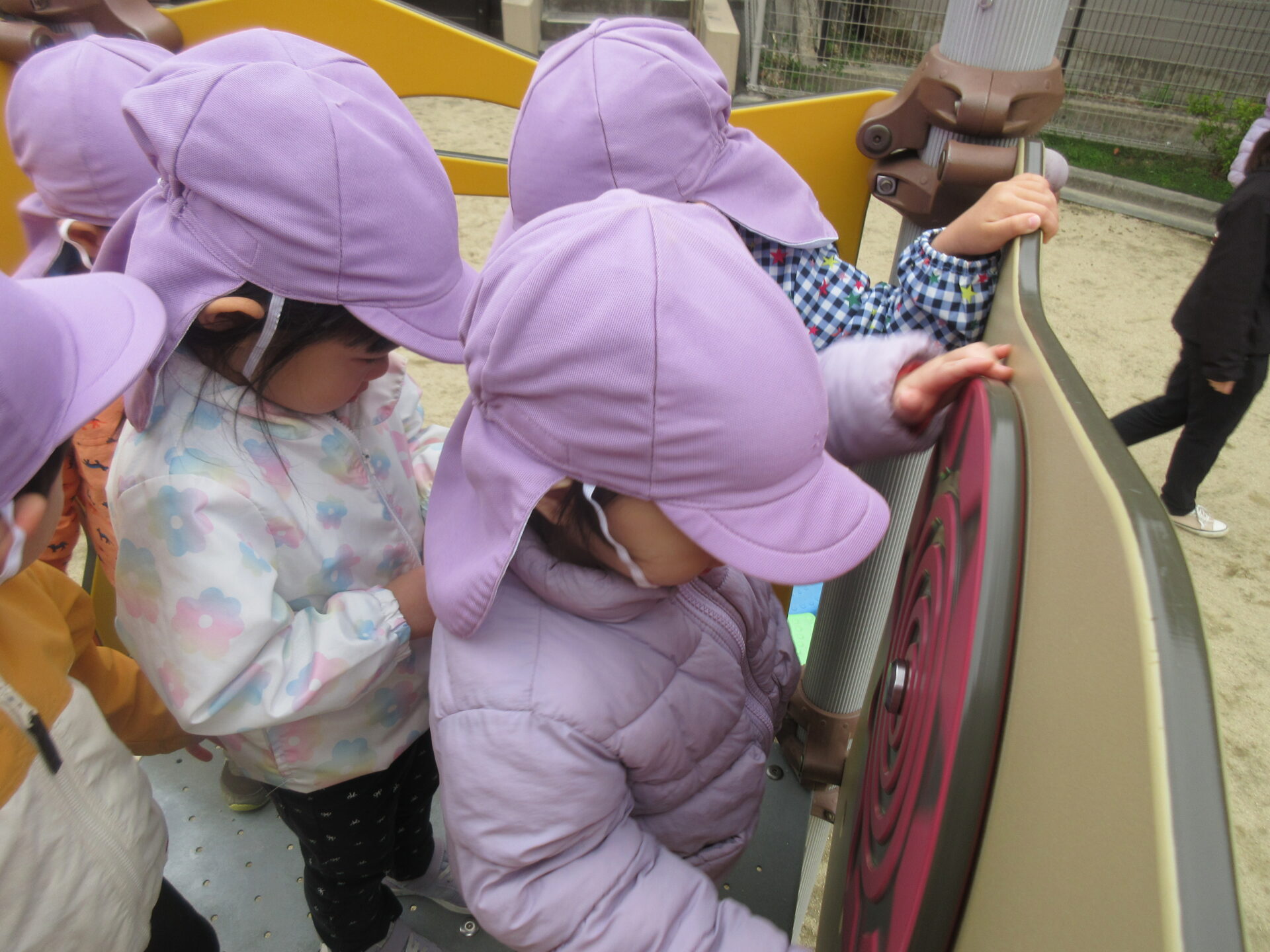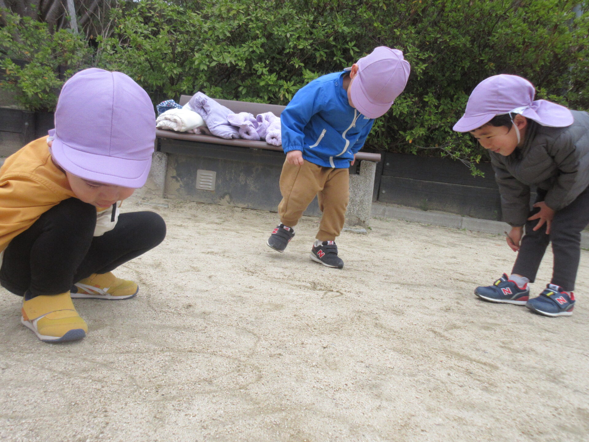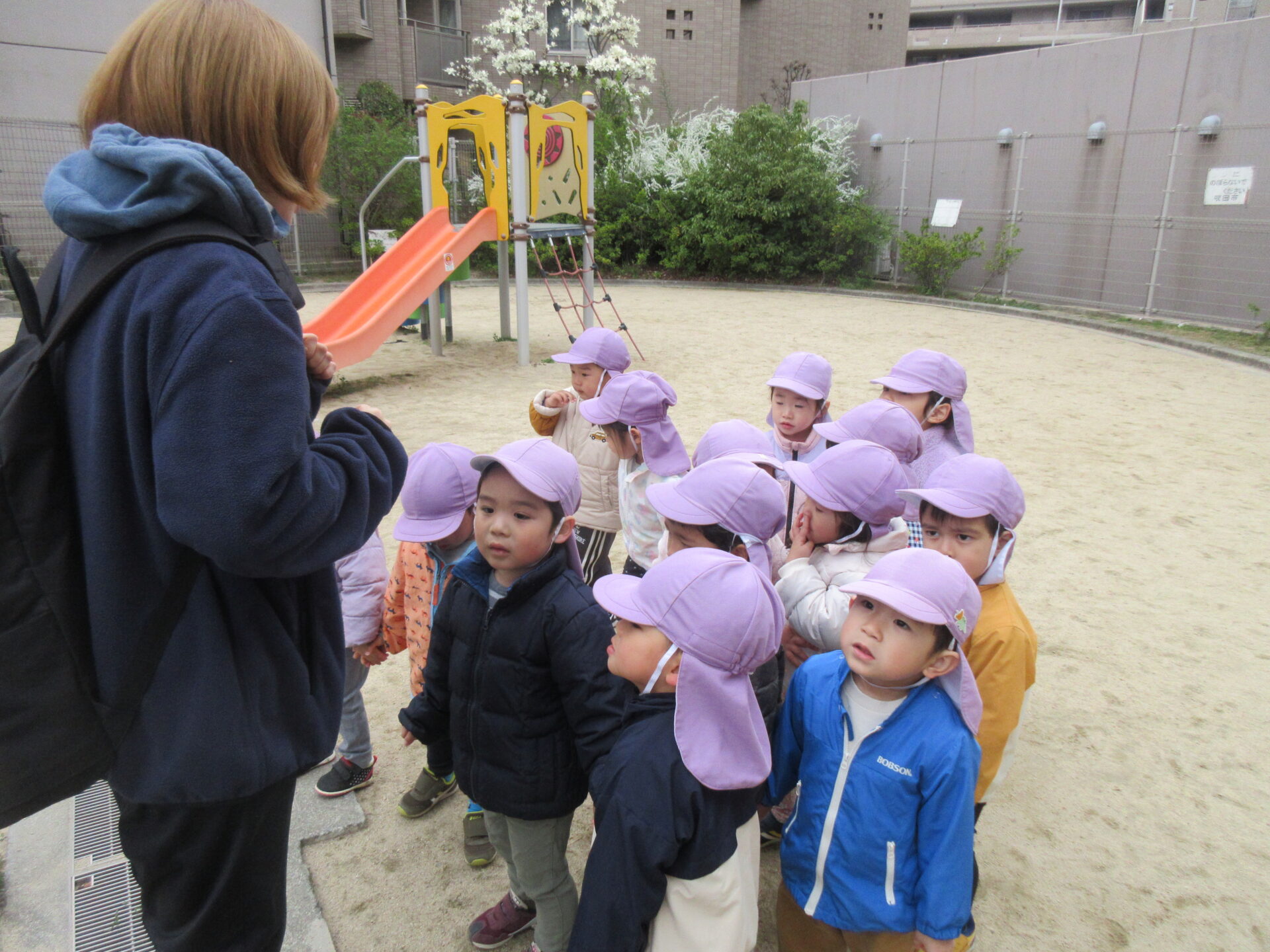 にじ組とそら組は園庭で