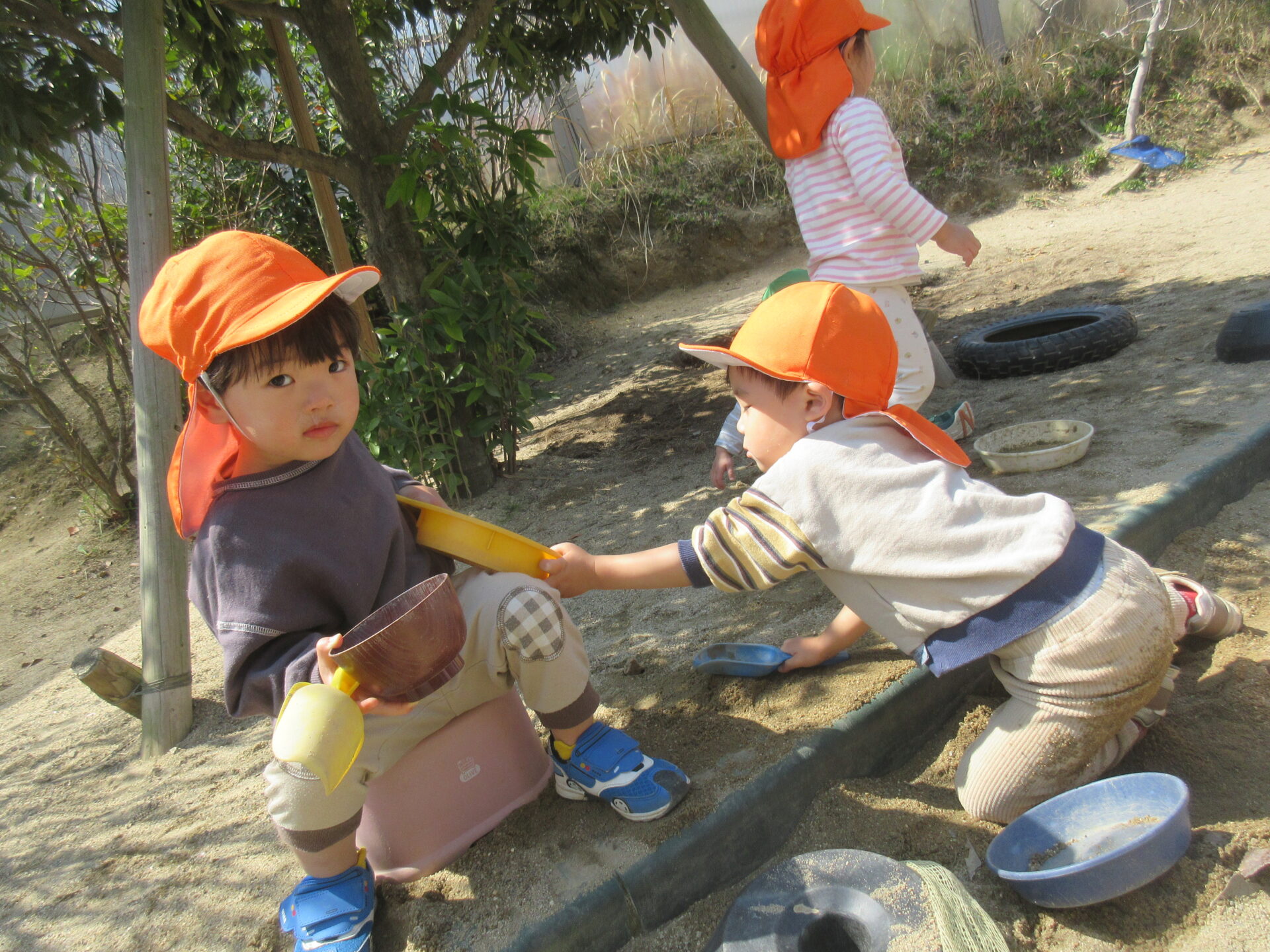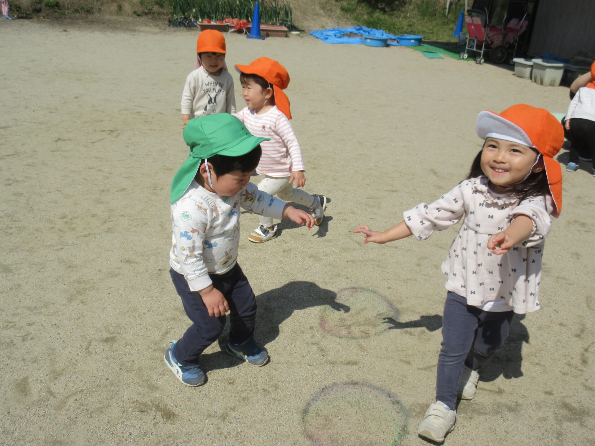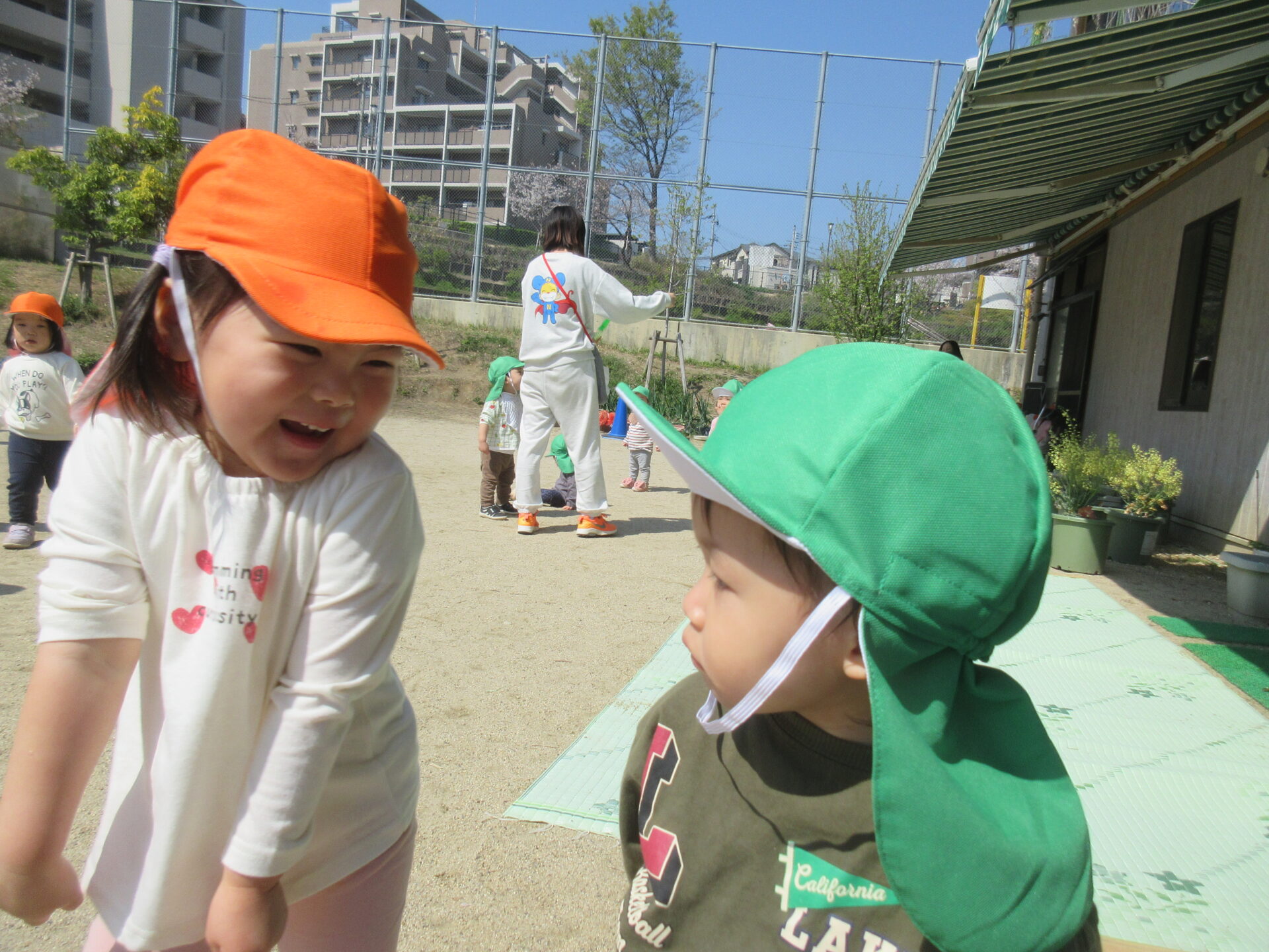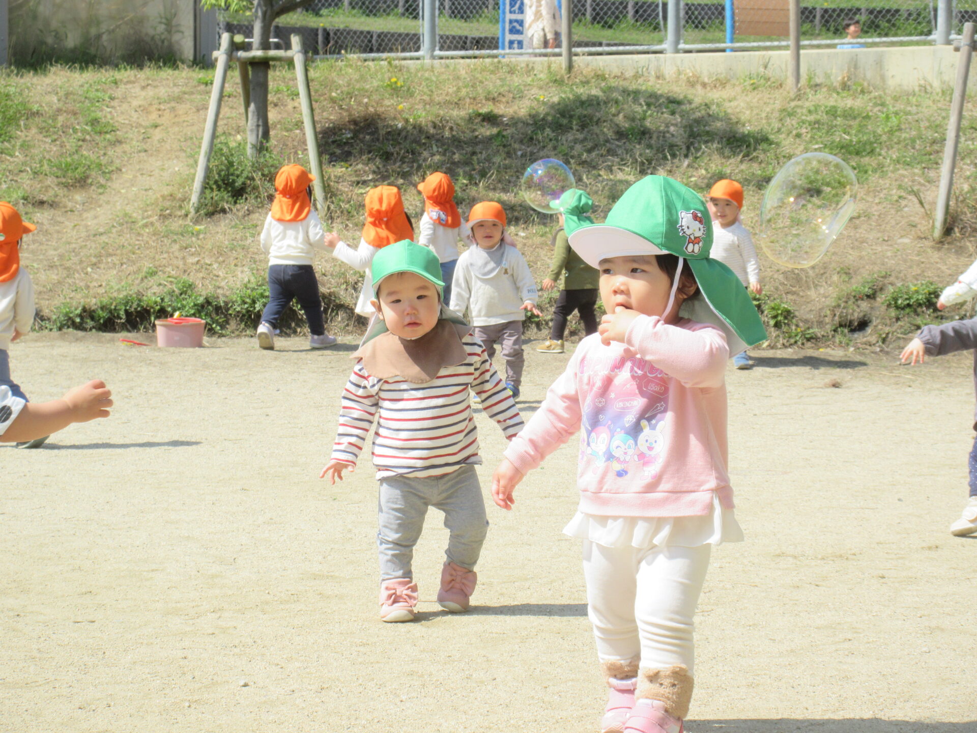 オレンジ帽子はあめ組(2歳児)