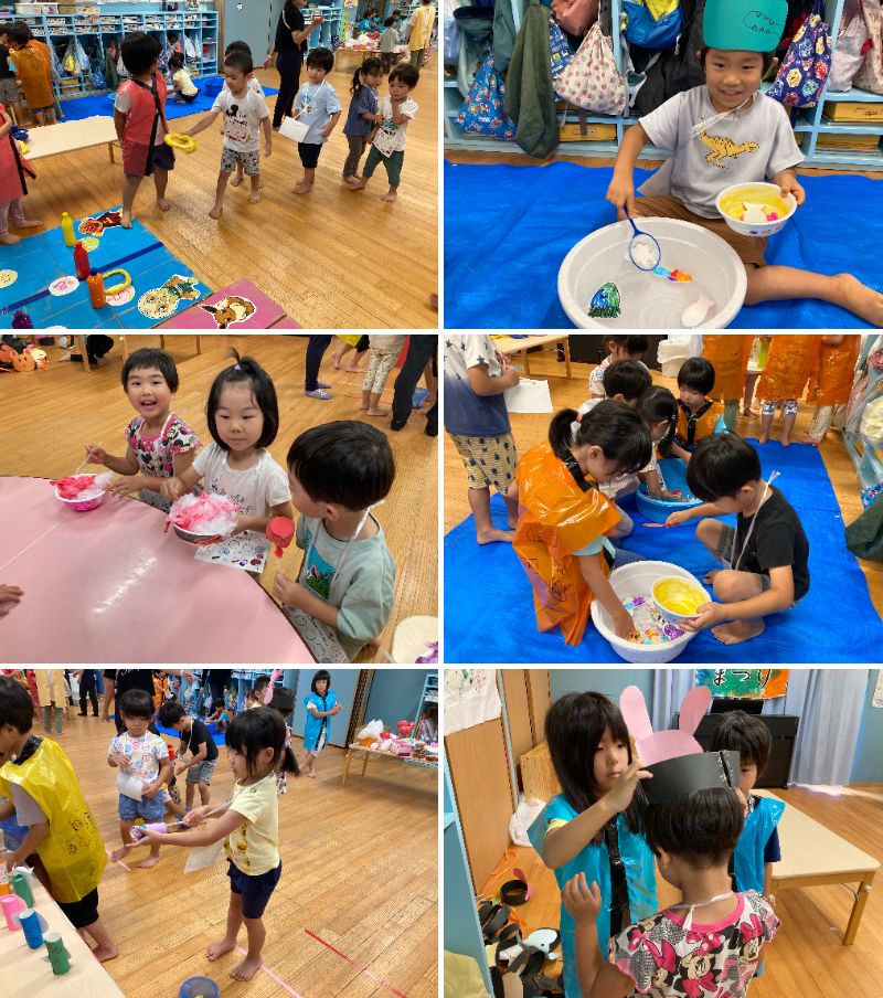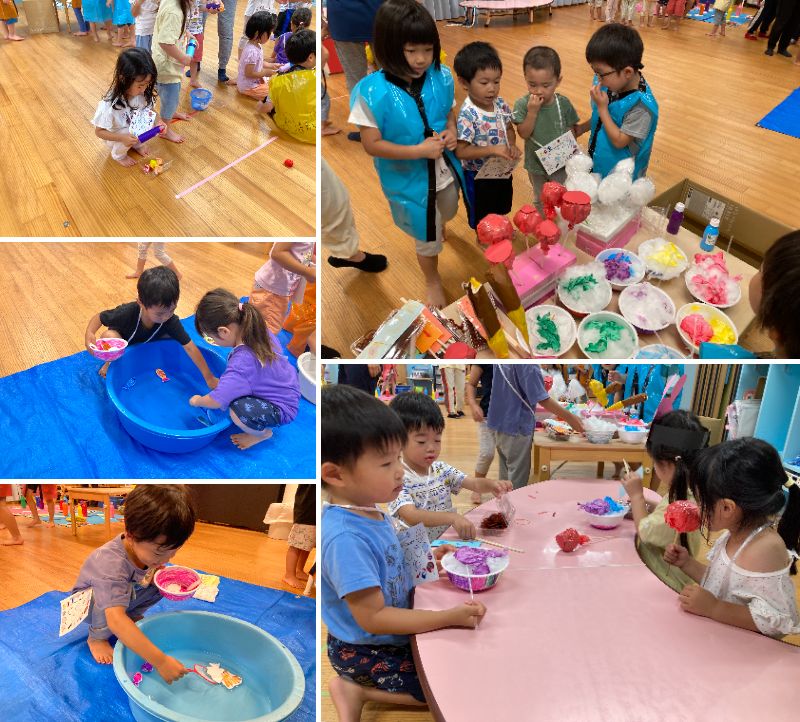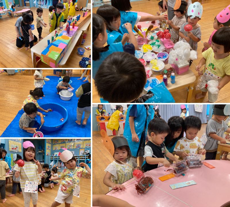 うみ組に続いてだいち組(1歳児)からそら組(4歳児)まで順番にやってきました。みんな5つのお店を回って楽しんでいましたよ。