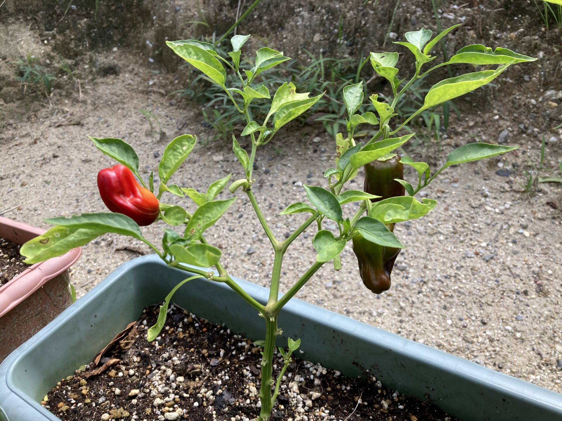 きゅうりやピーマンたちは、さすがにこの暑さに負けて枯れたり大きくなれずに焼けてしまってます。
