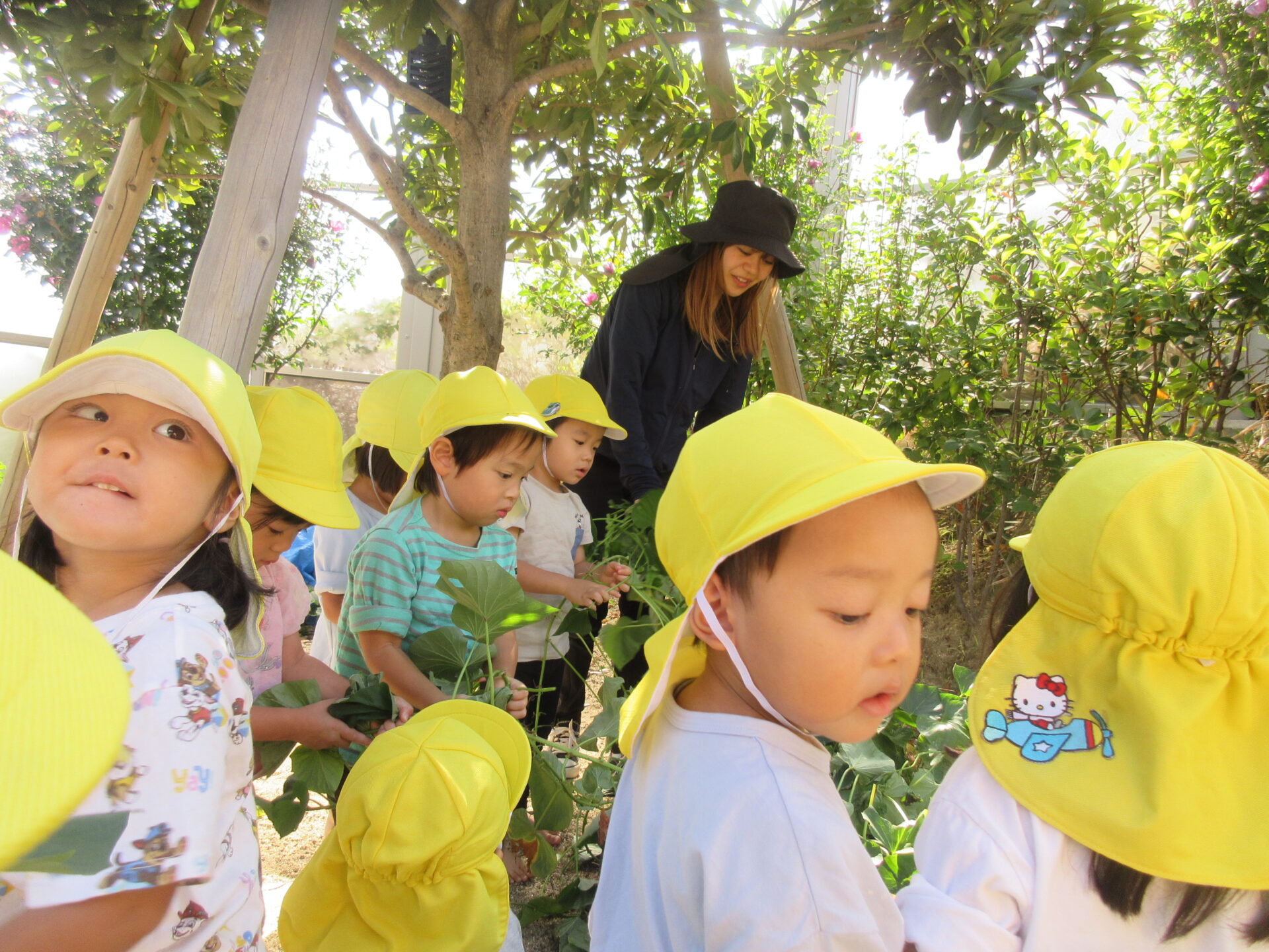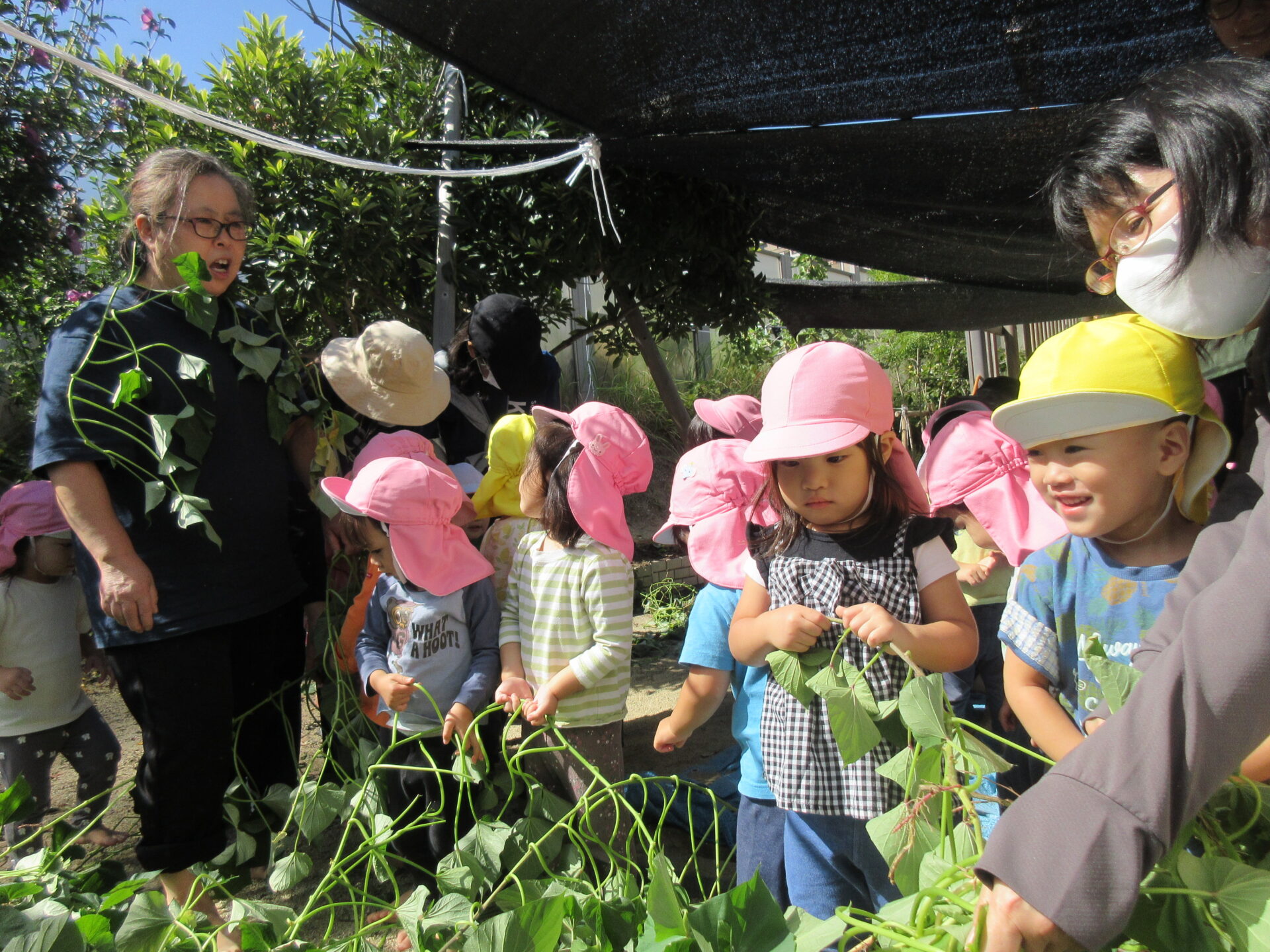 「お芋はどこ⁉」と先生に訴えています。
