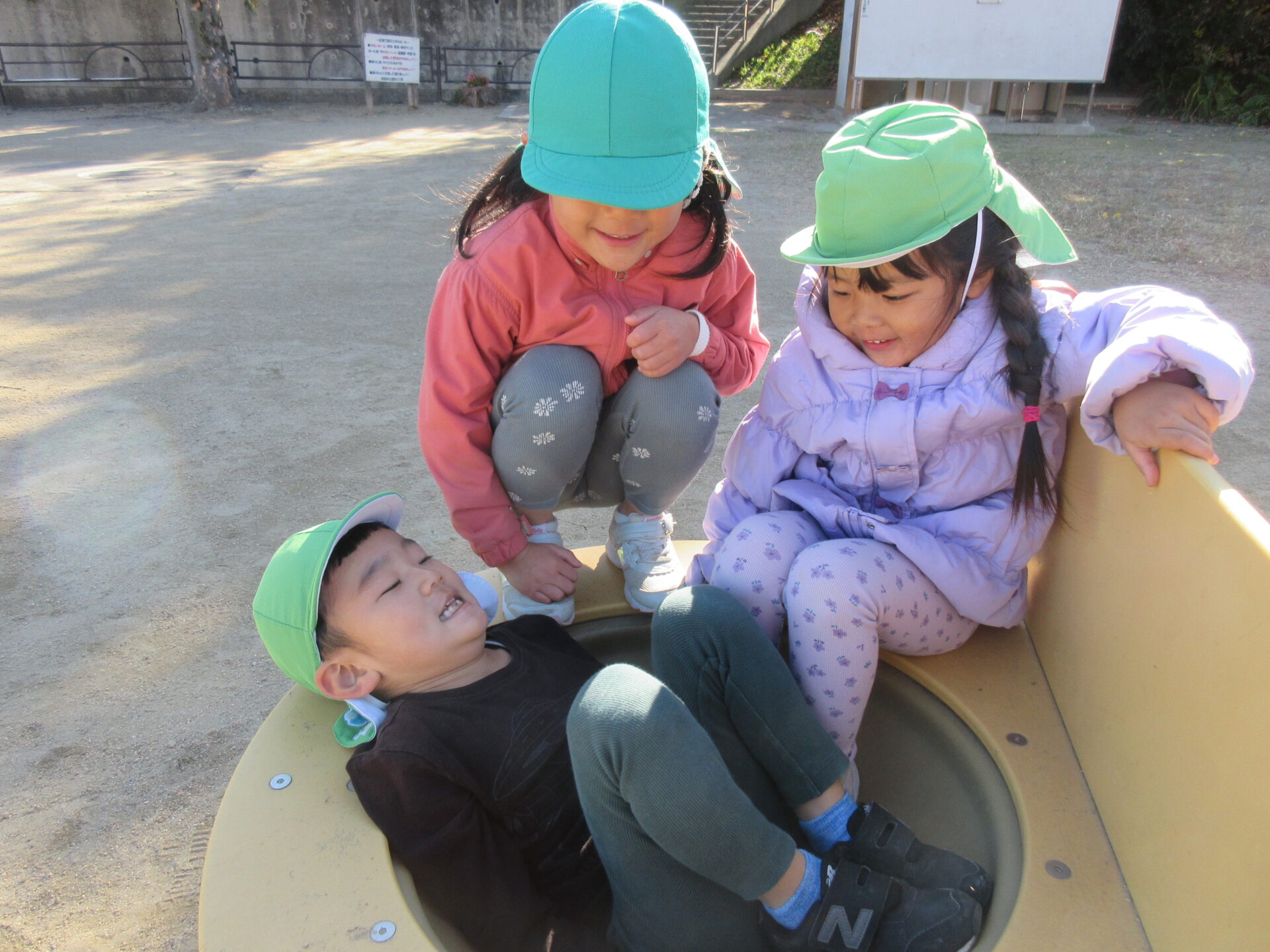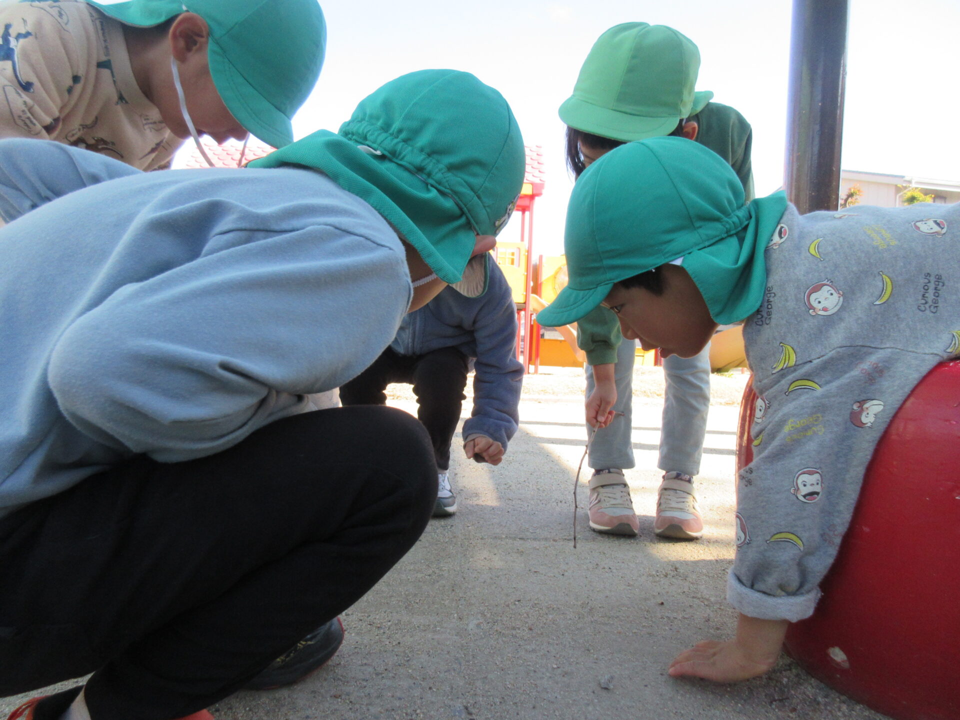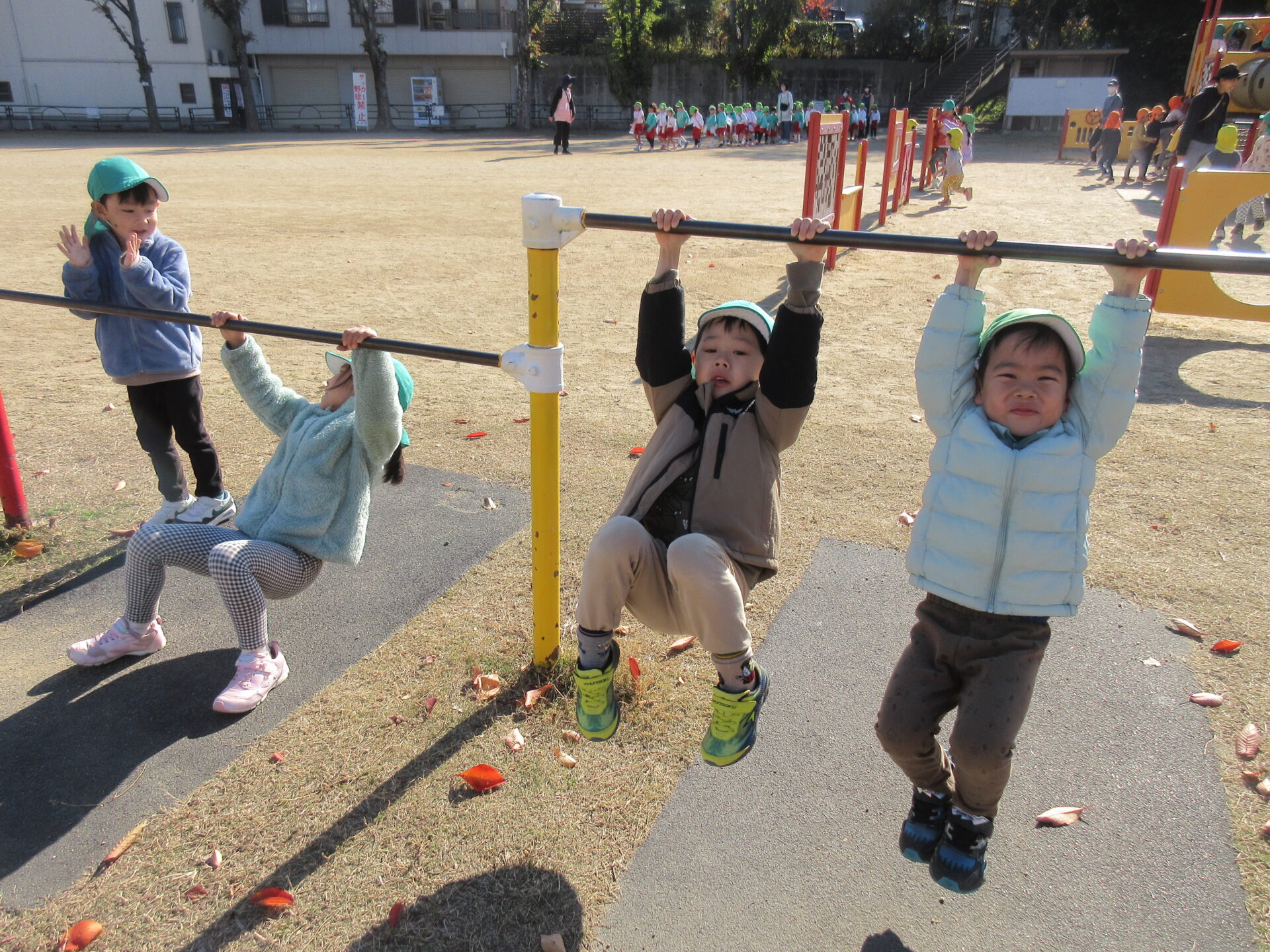 緑色の帽子がそら組(4歳児)