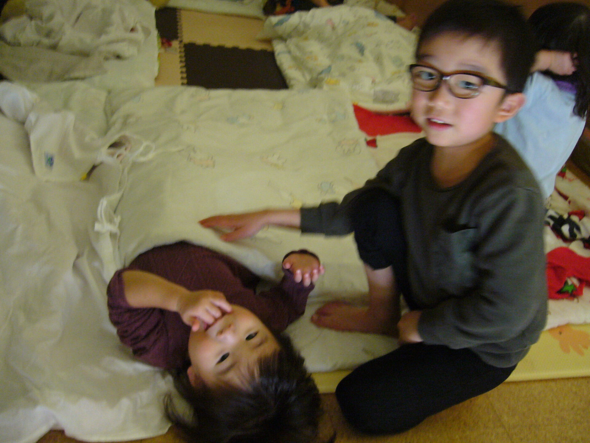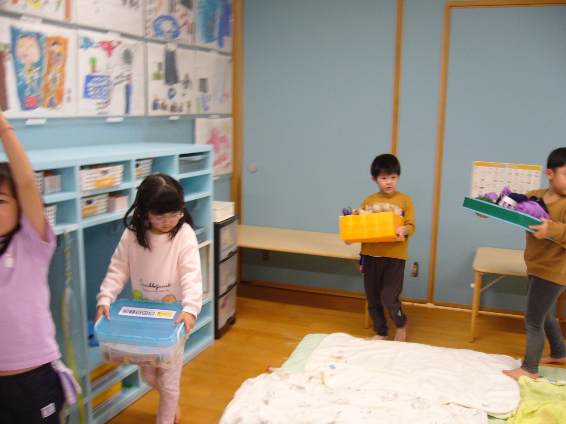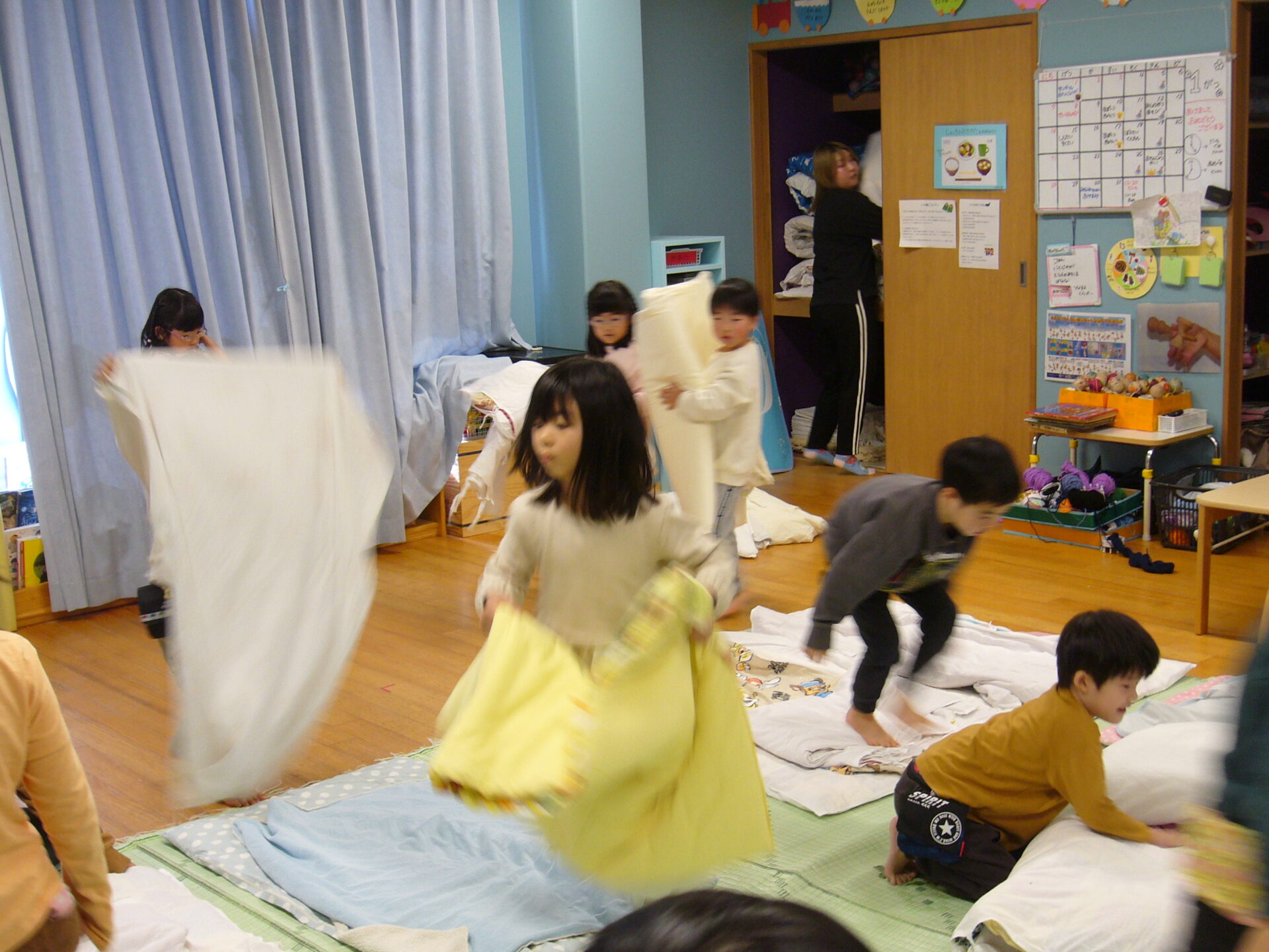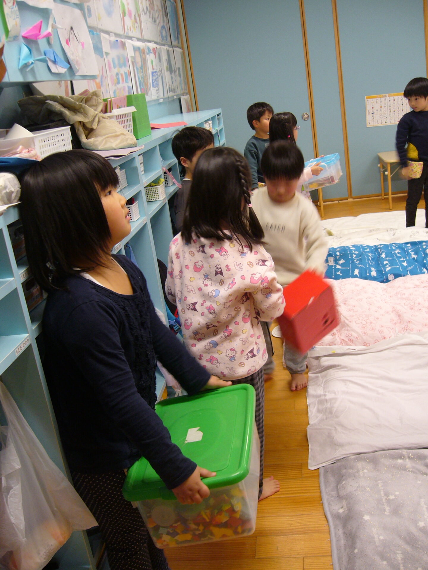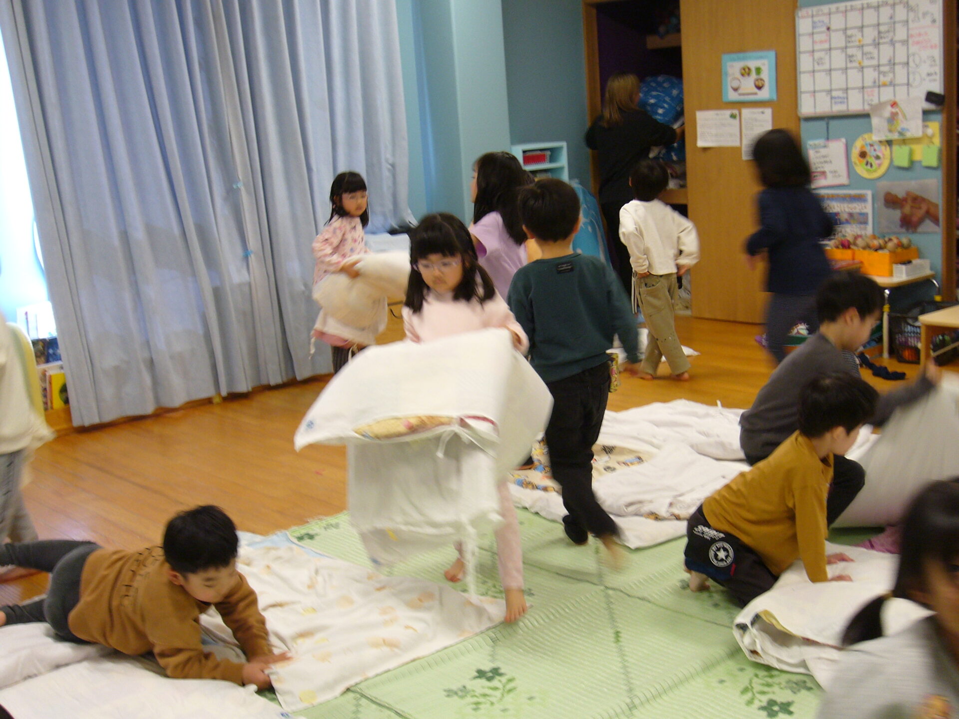 にじ組のお布団を敷いたり