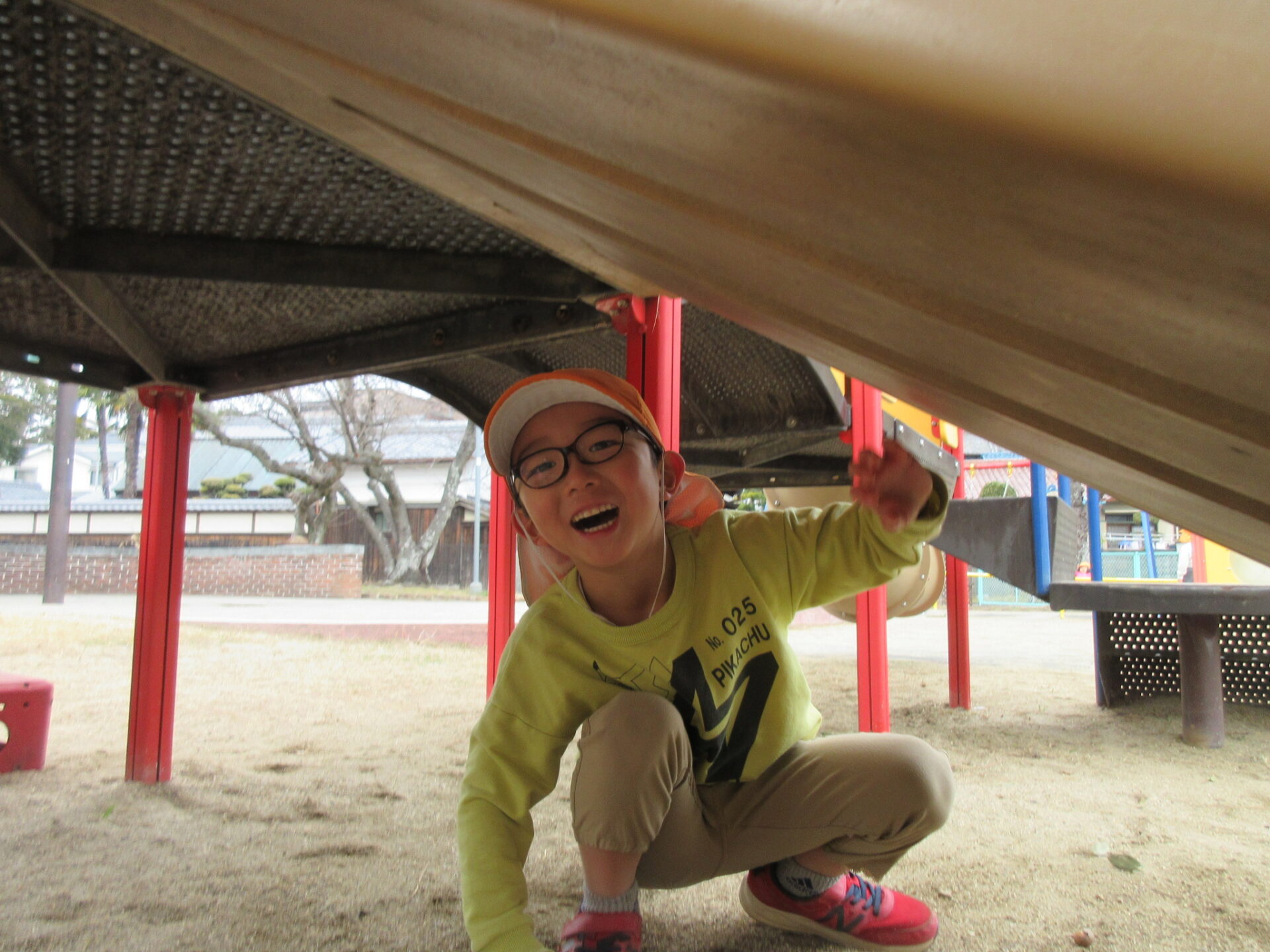 すべり台の下で
