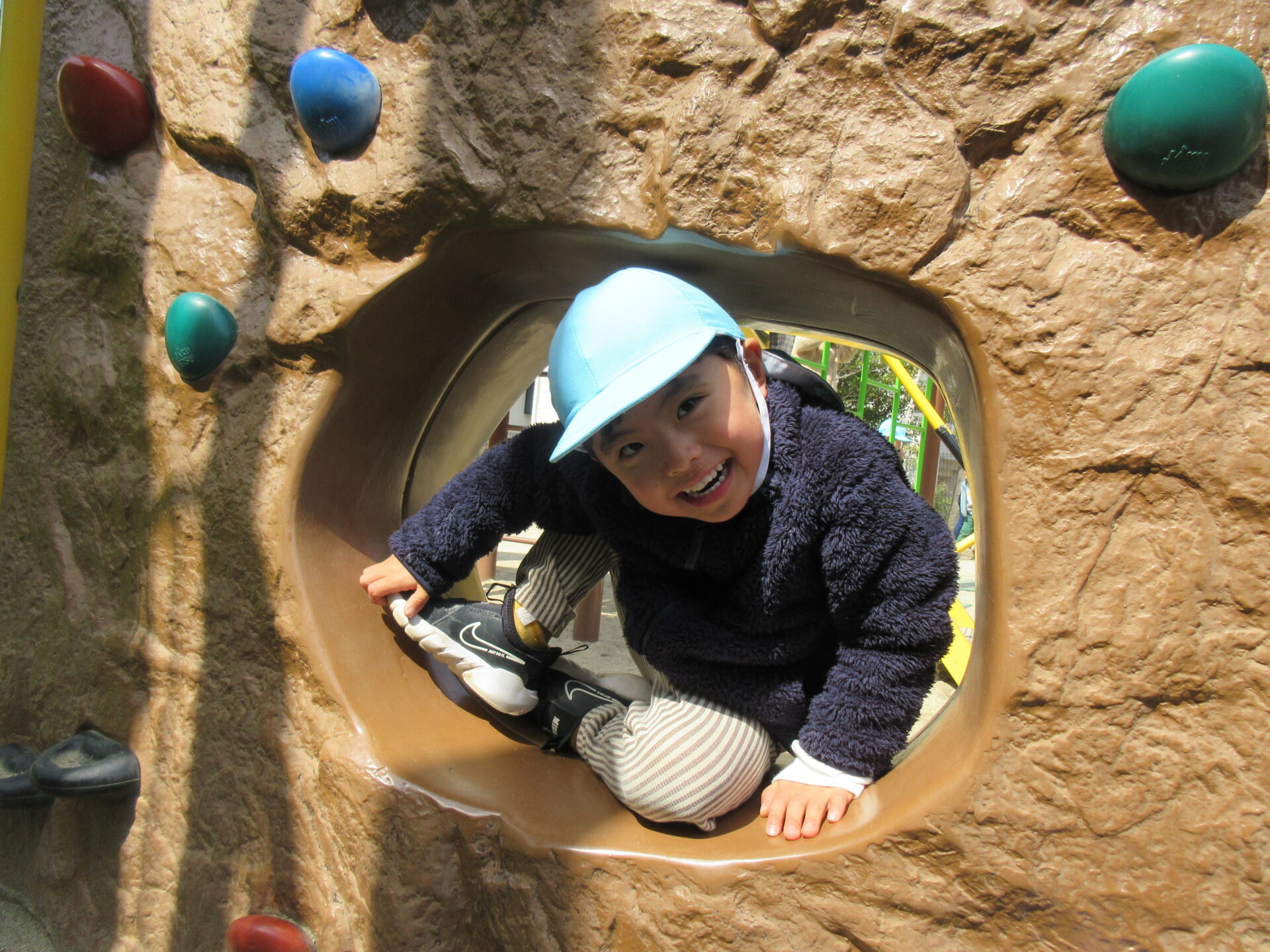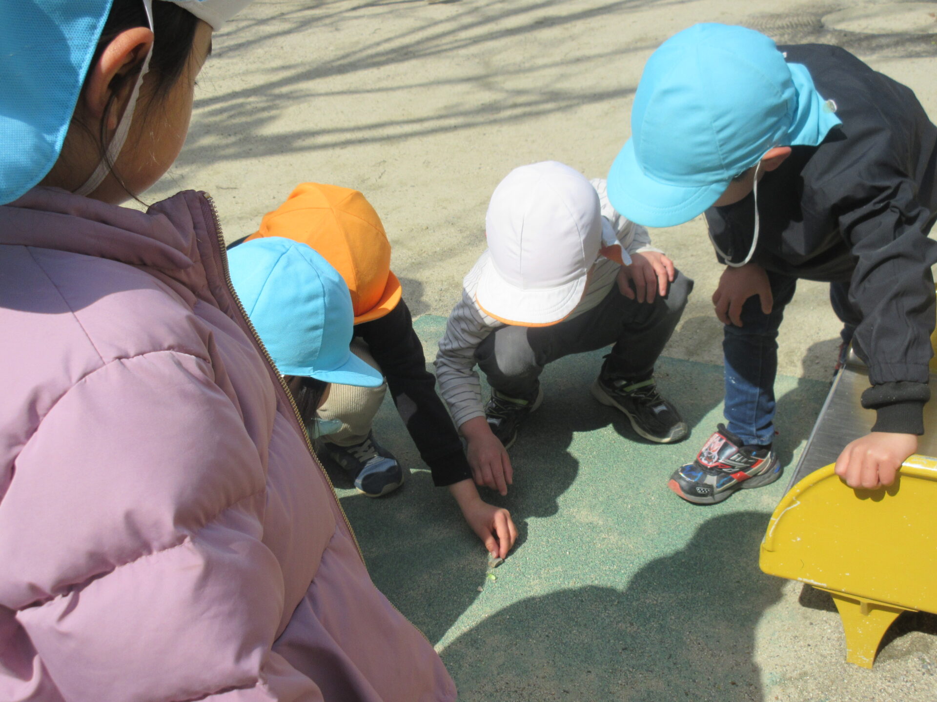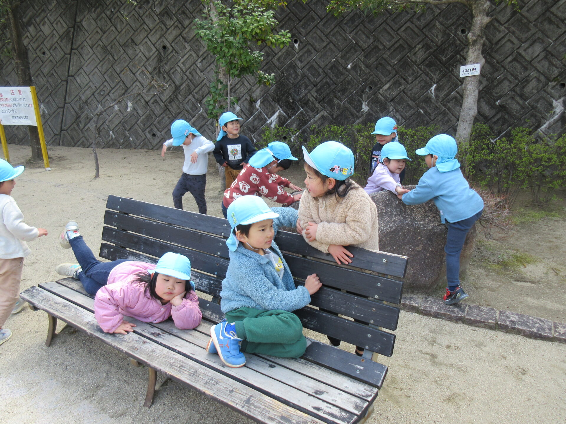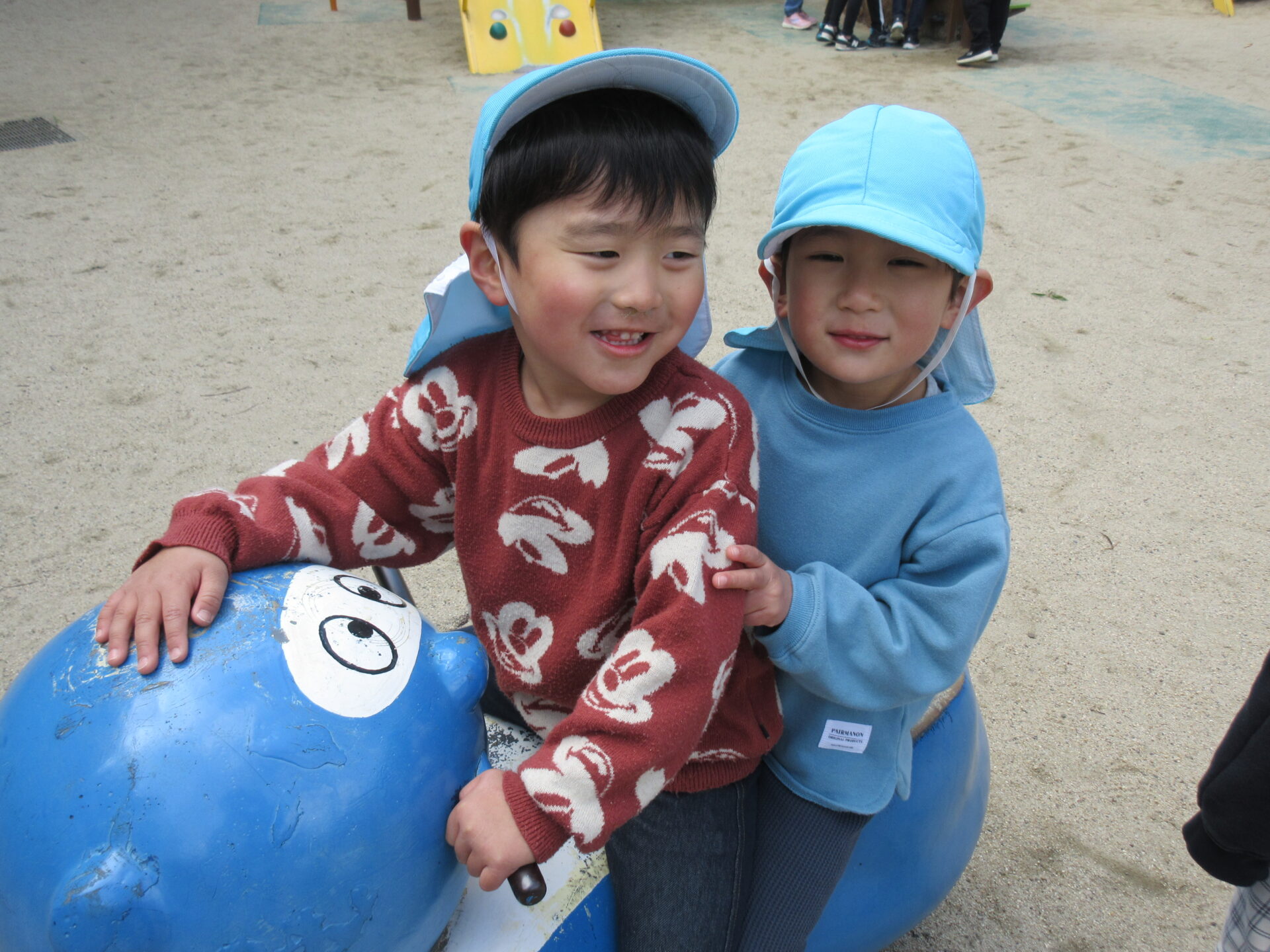 水色の帽子がにじ組(3歳児)です☺