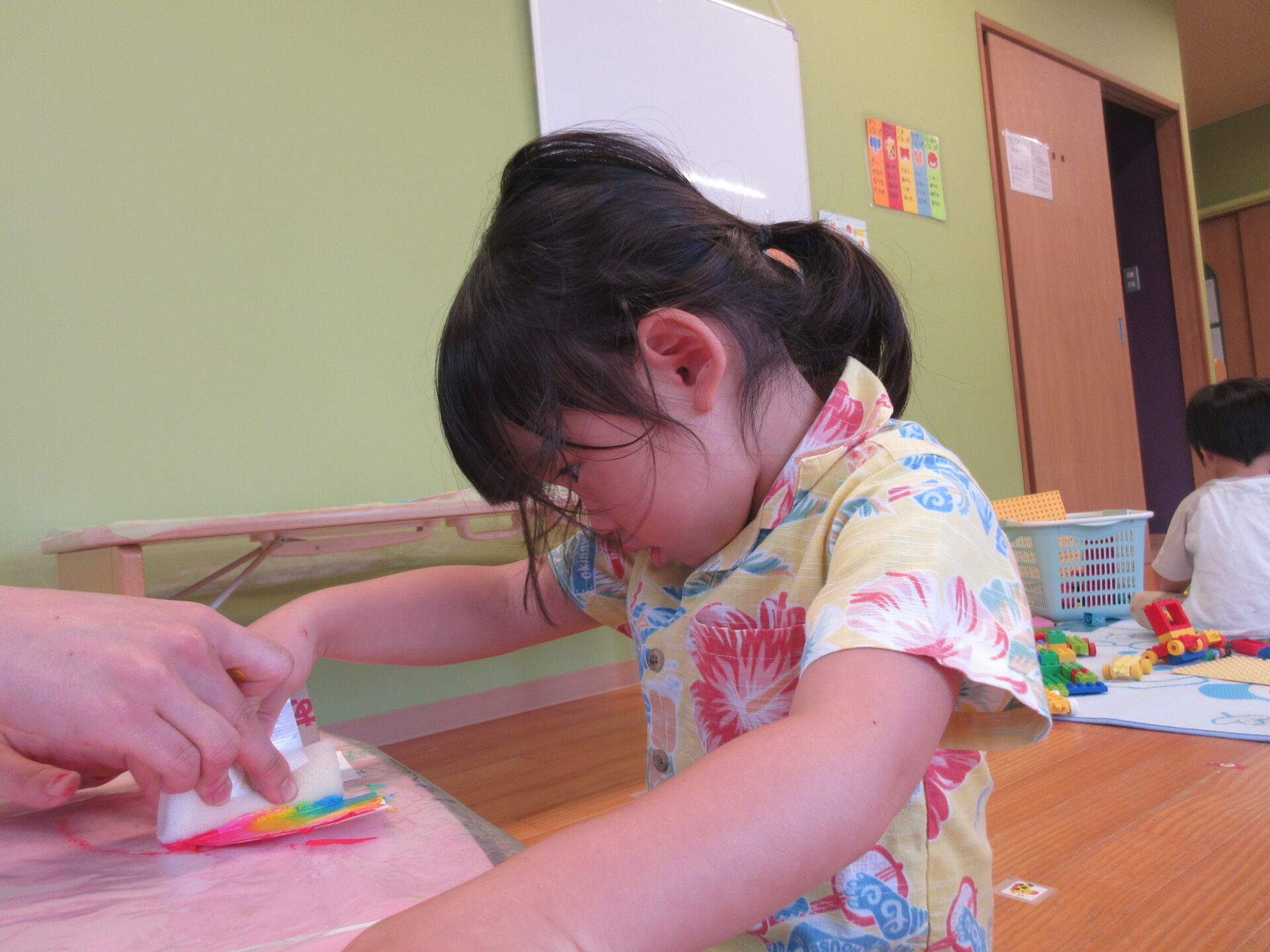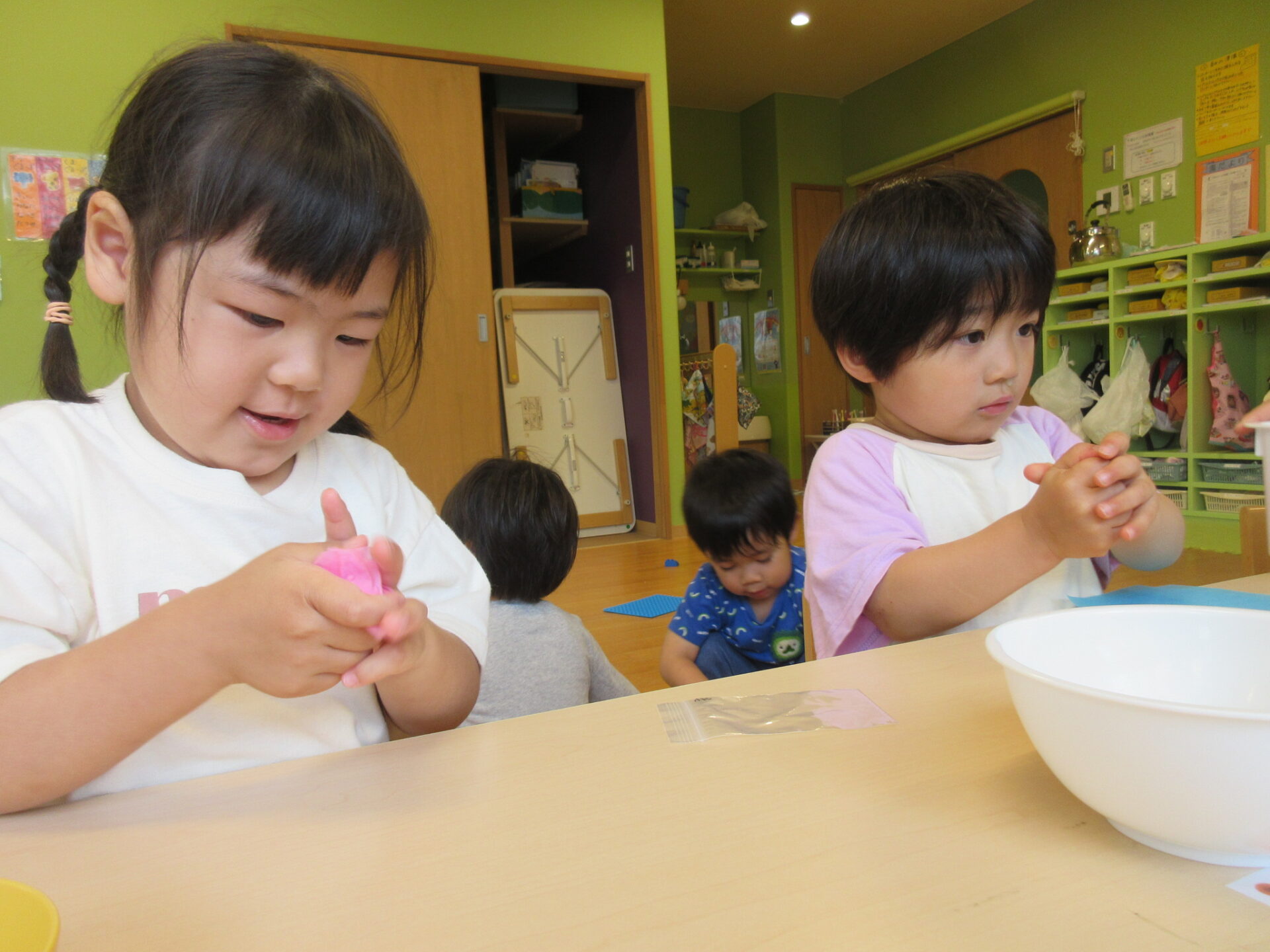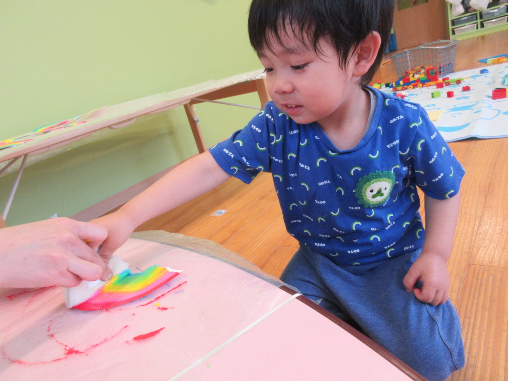 にじ組(3歳児)の製作の様子です😊
