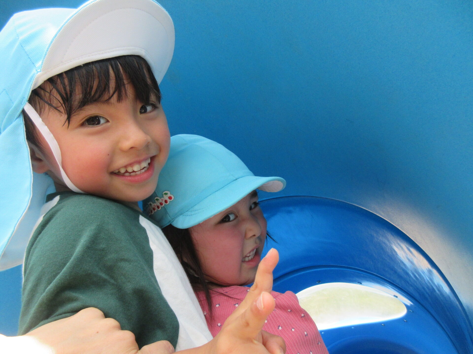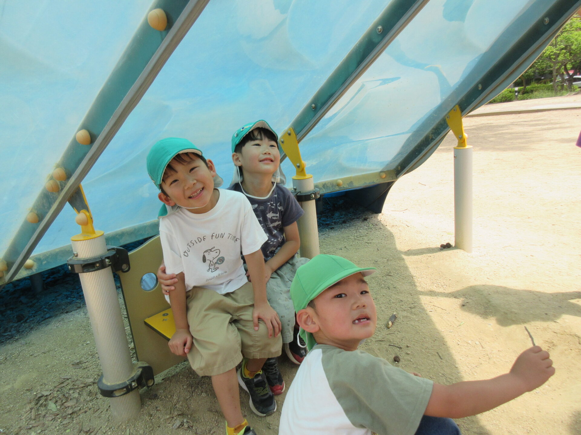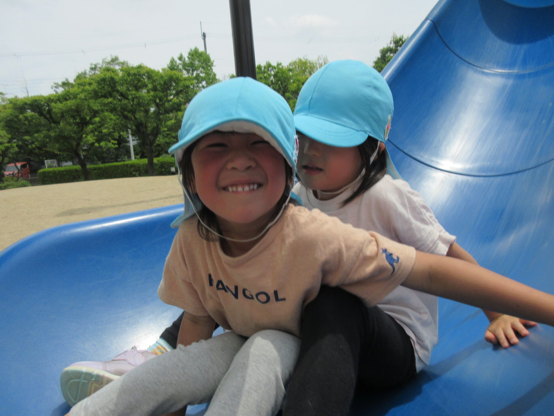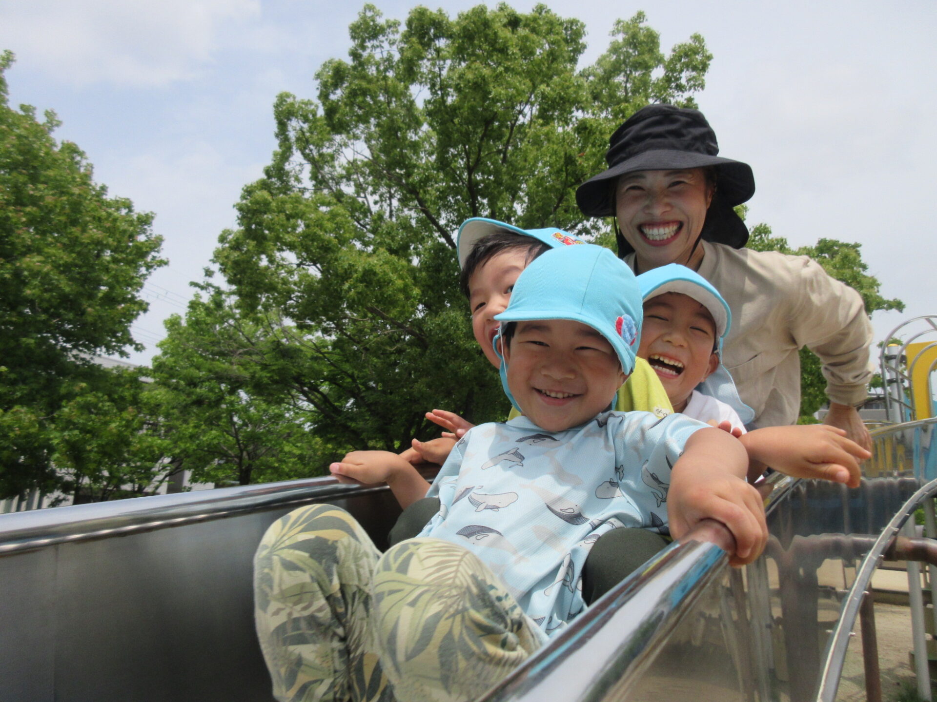 上は滑り台😄滑るお友だちの影が