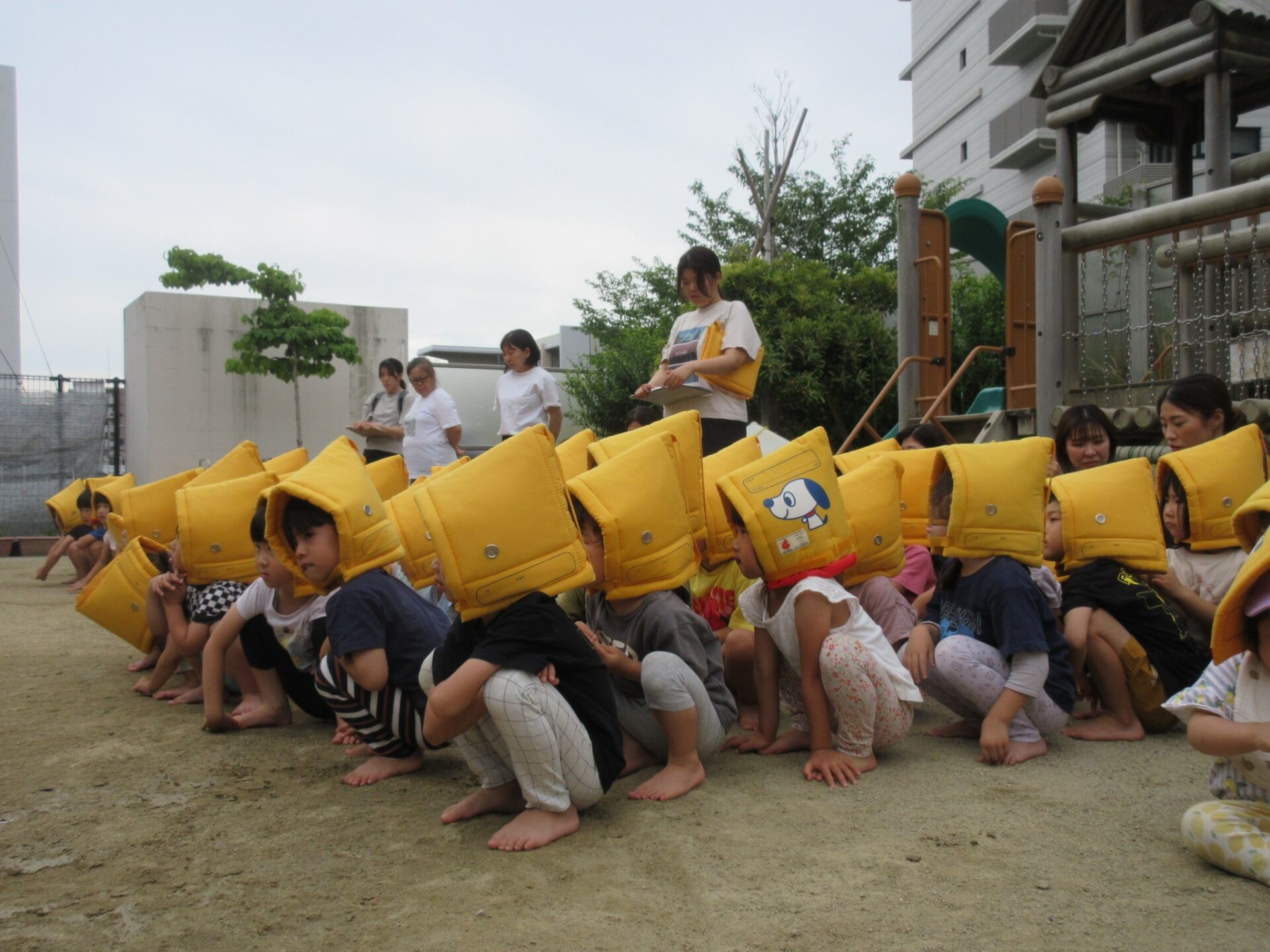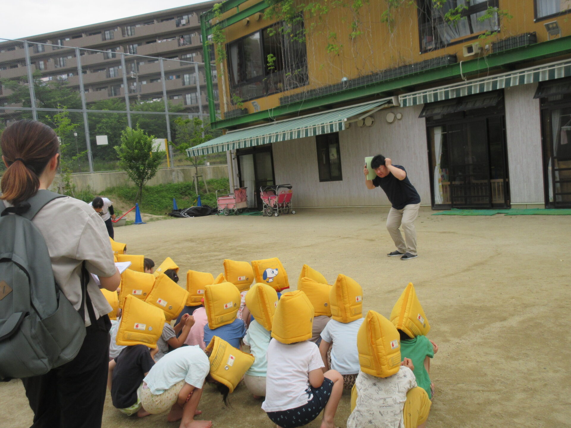 園庭に逃げましょう』の放送で