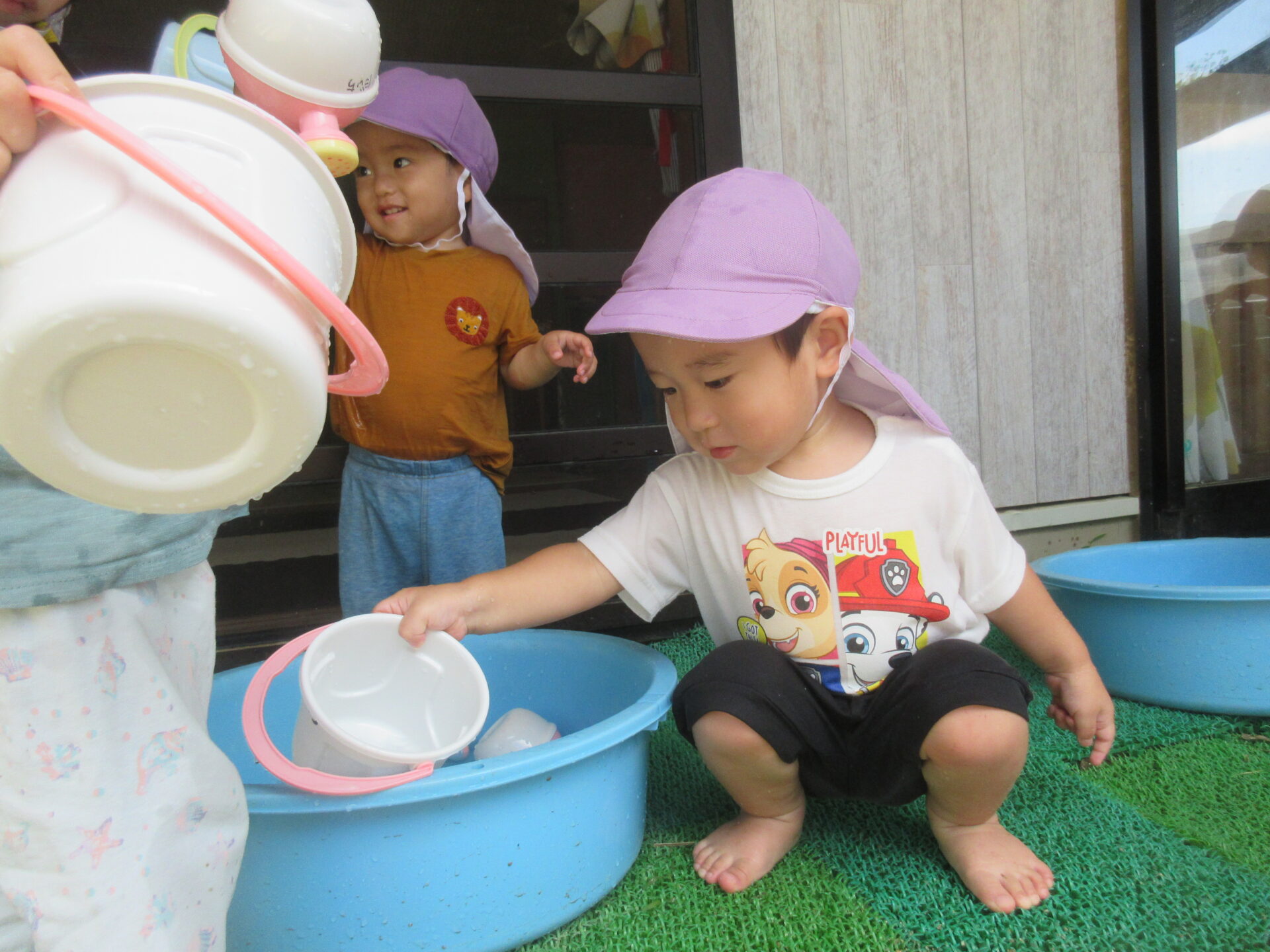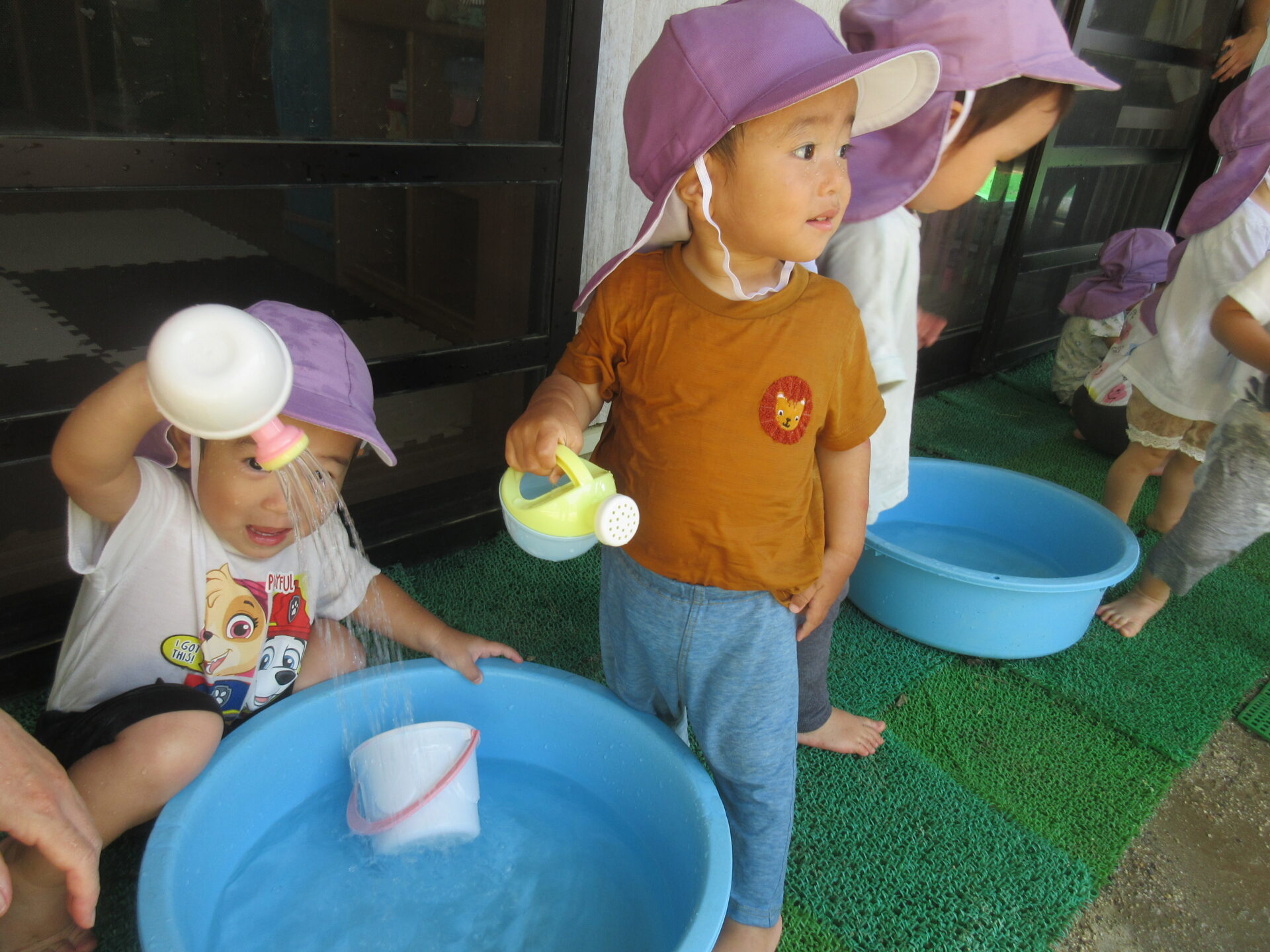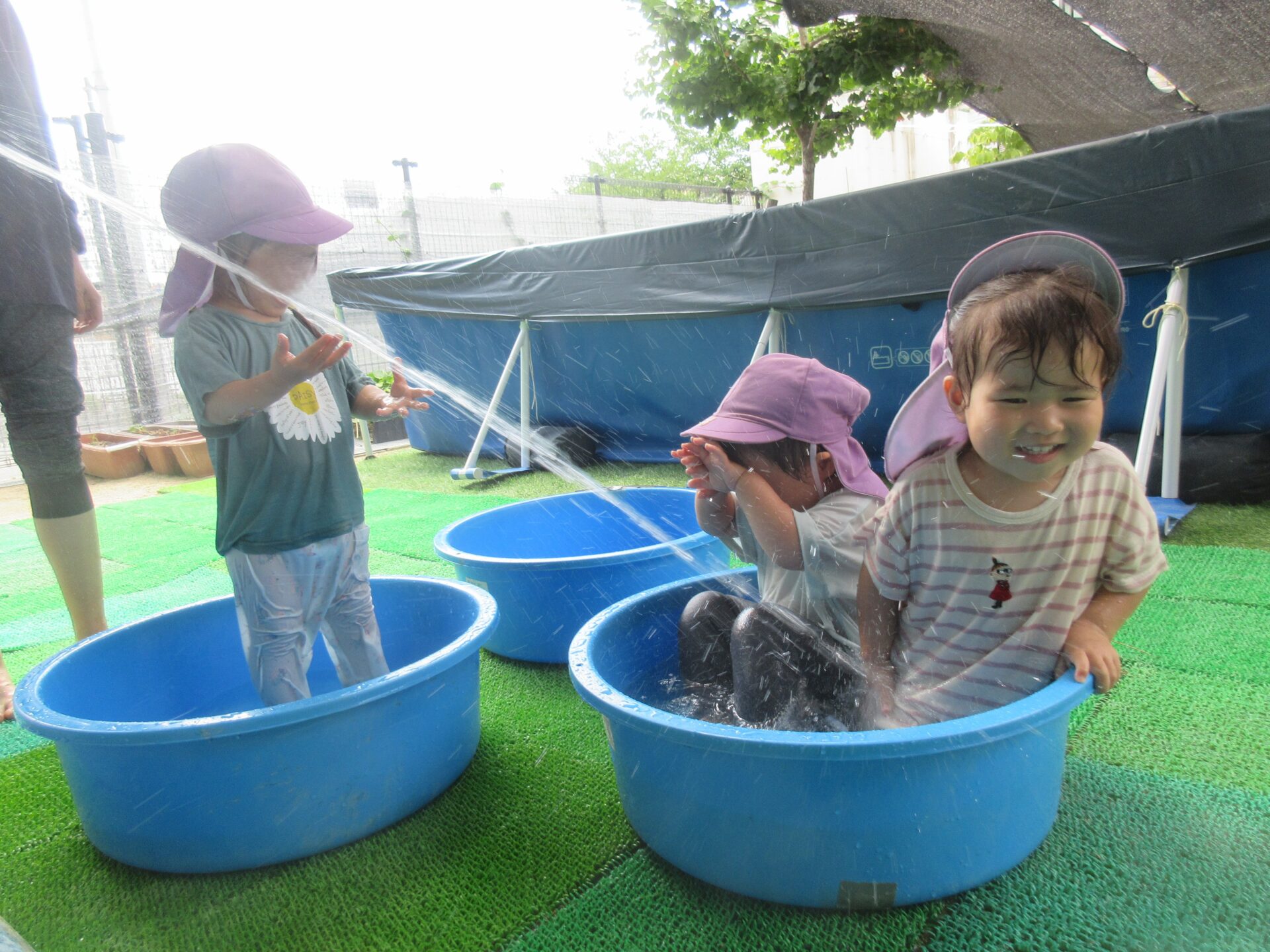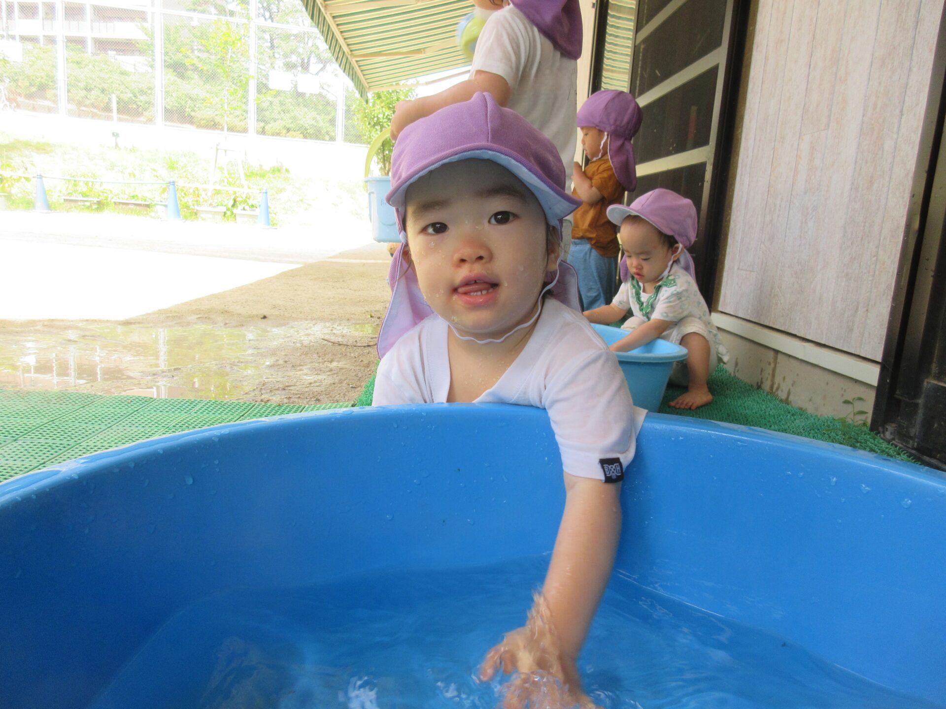 タライで水遊び!