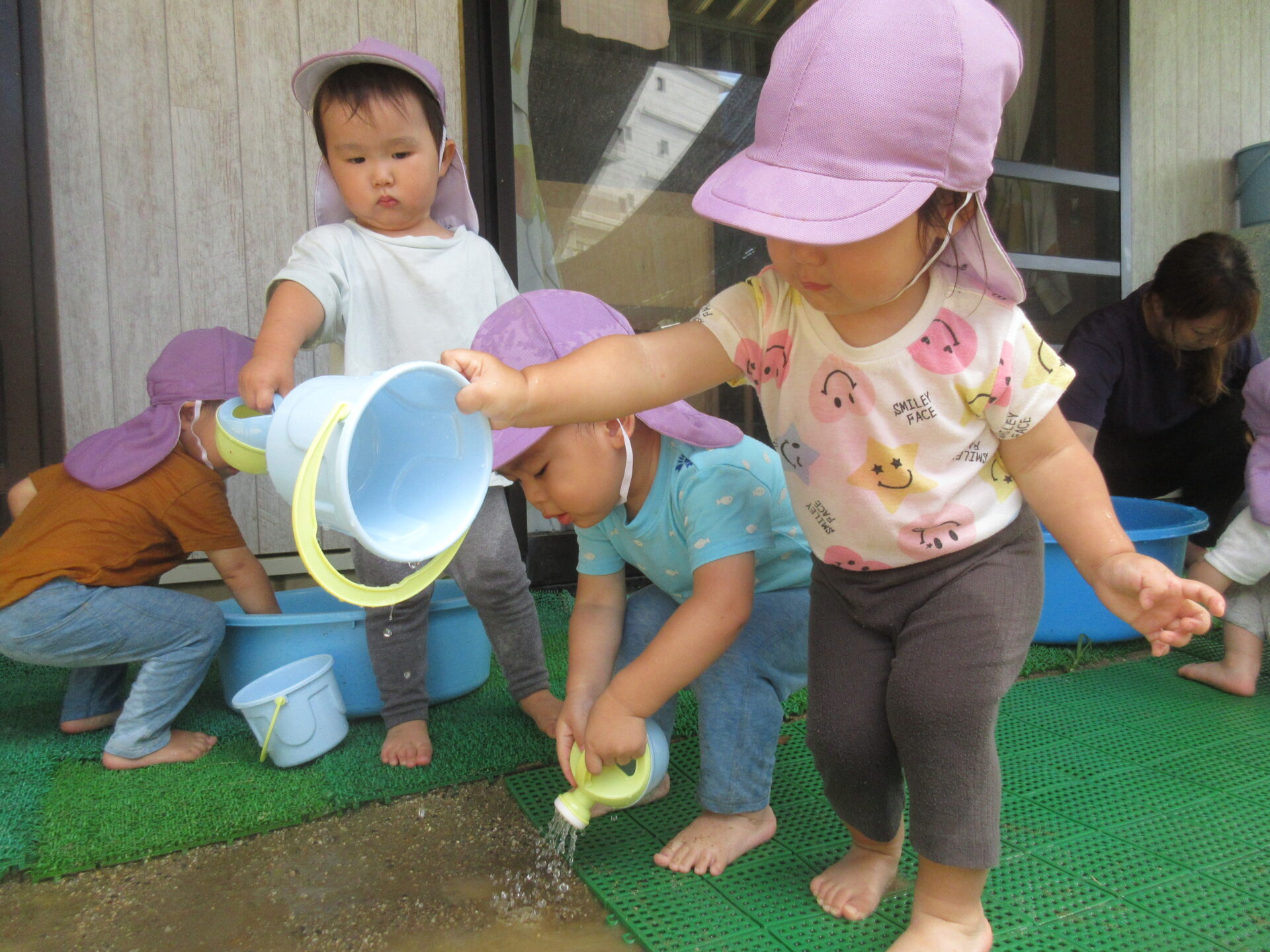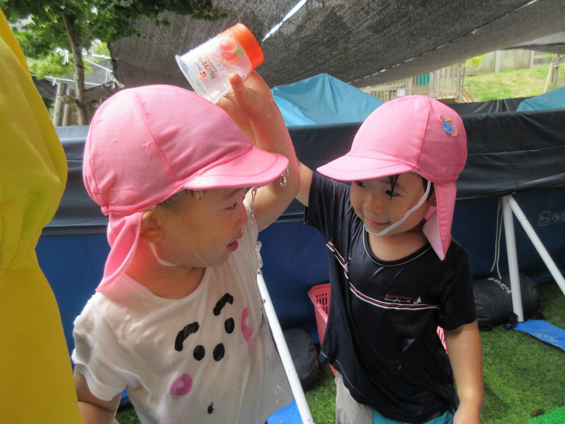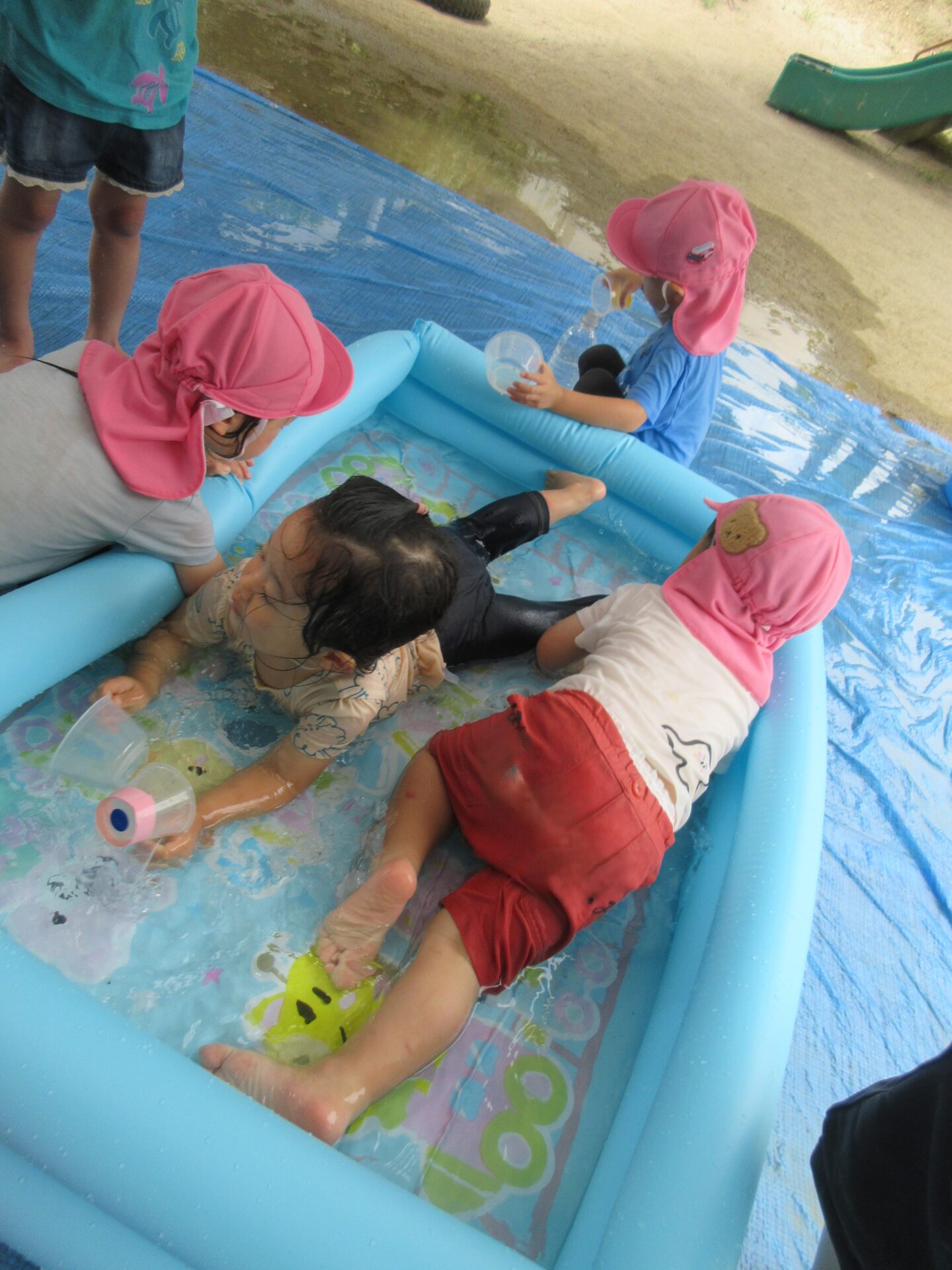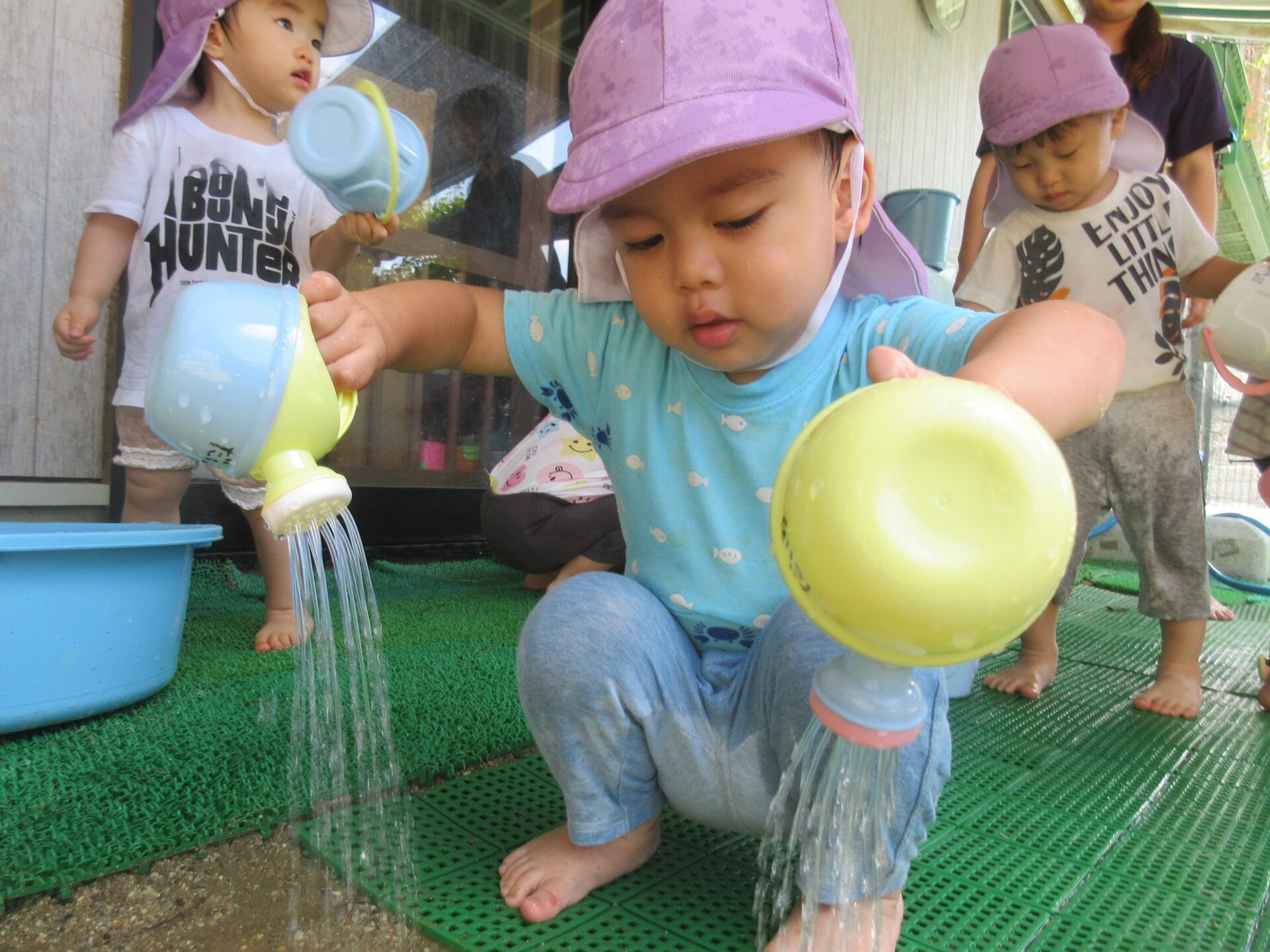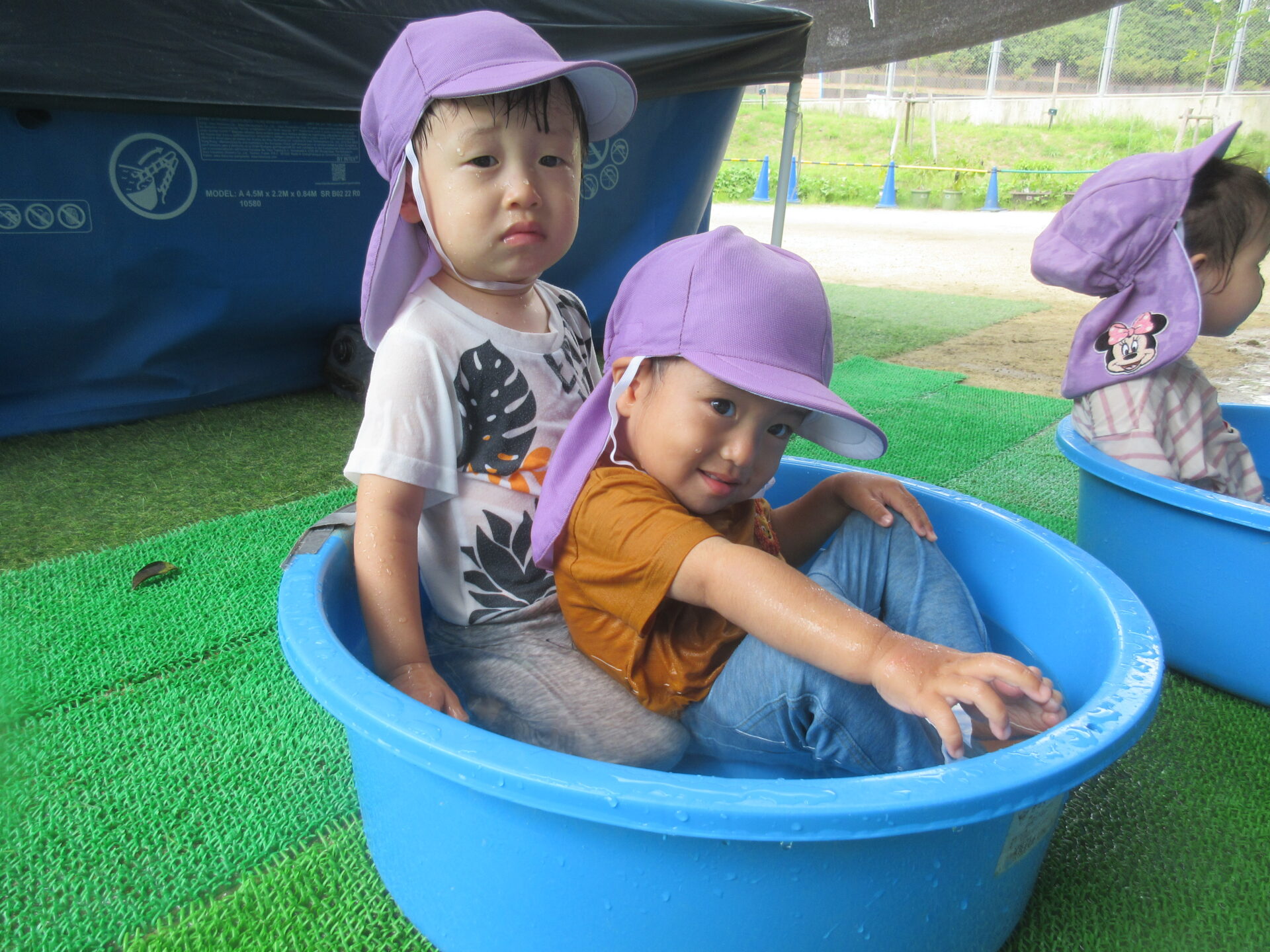 タライで水遊び!