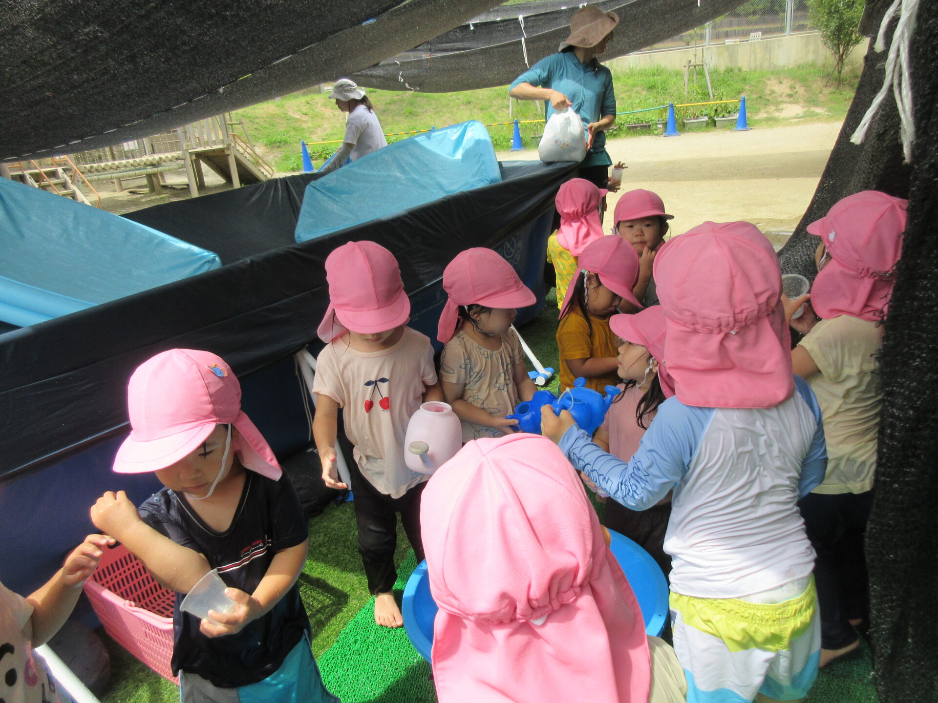 子どもたちは水で遊んで