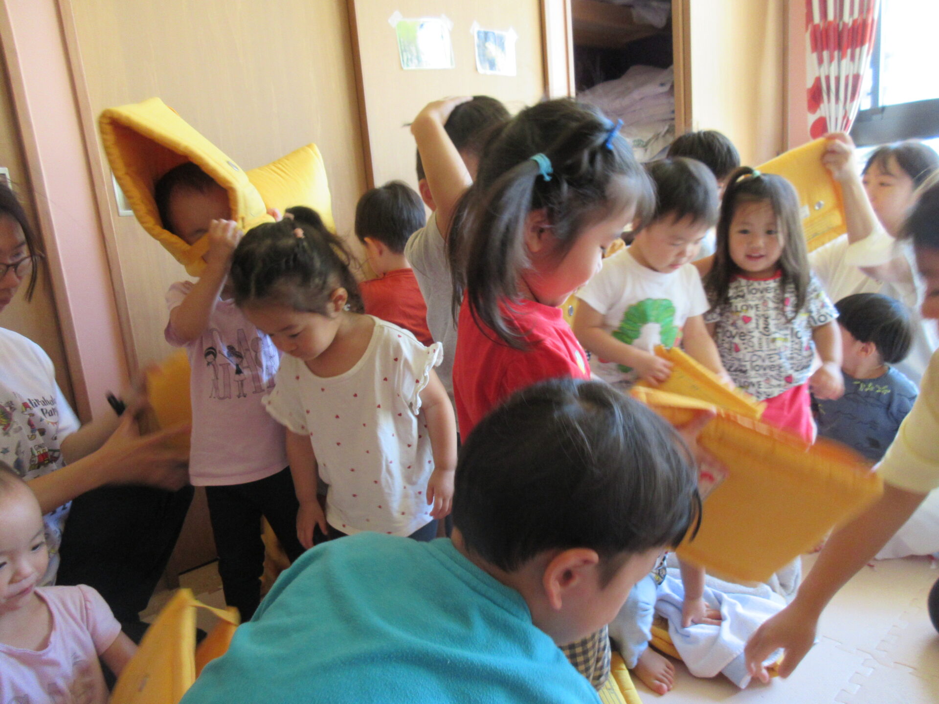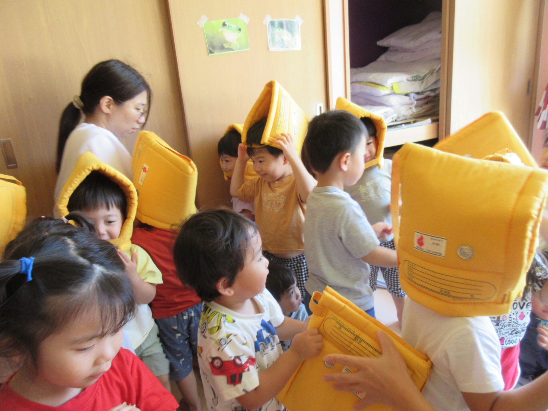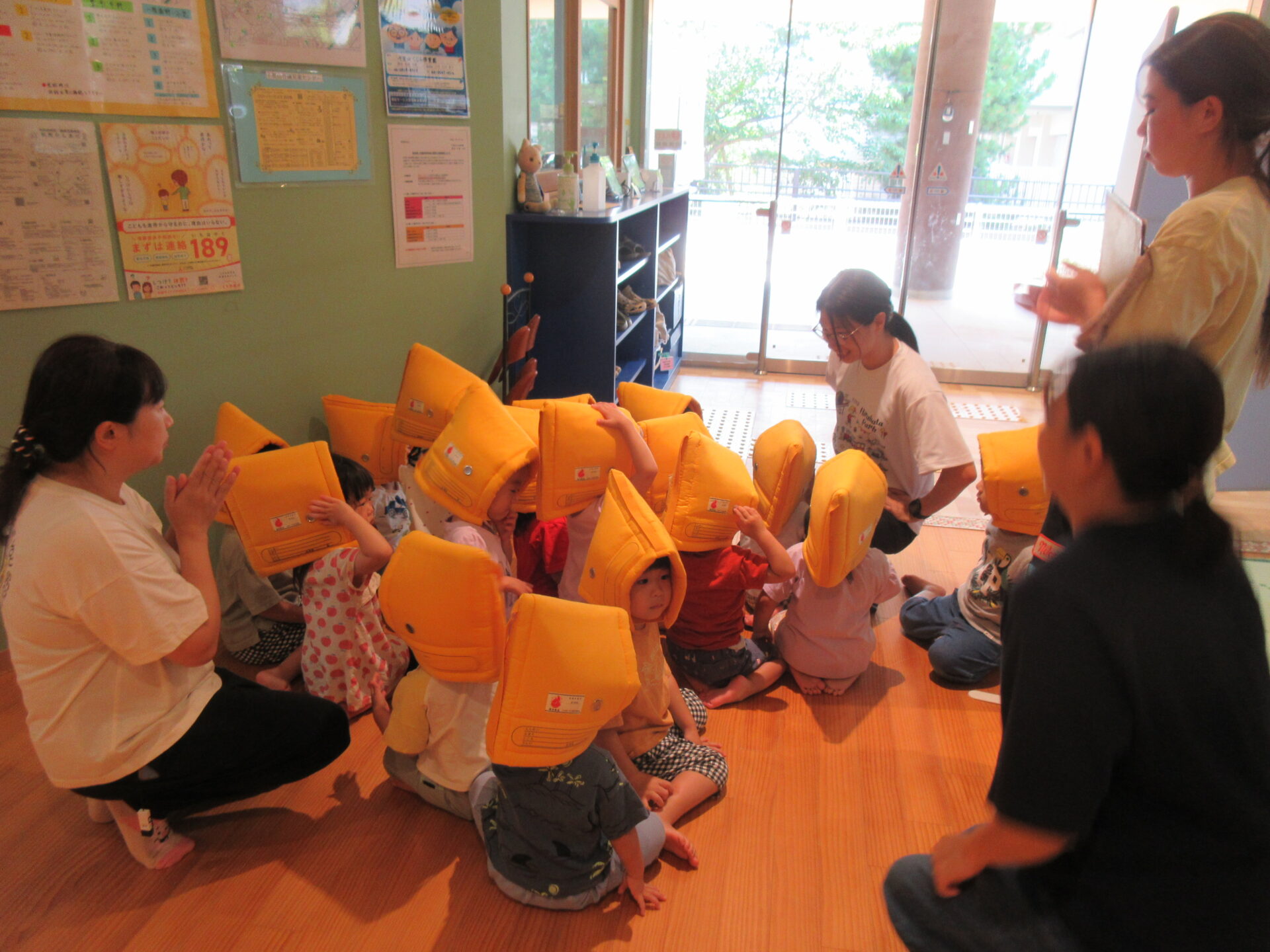 防災頭巾をかぶります!!