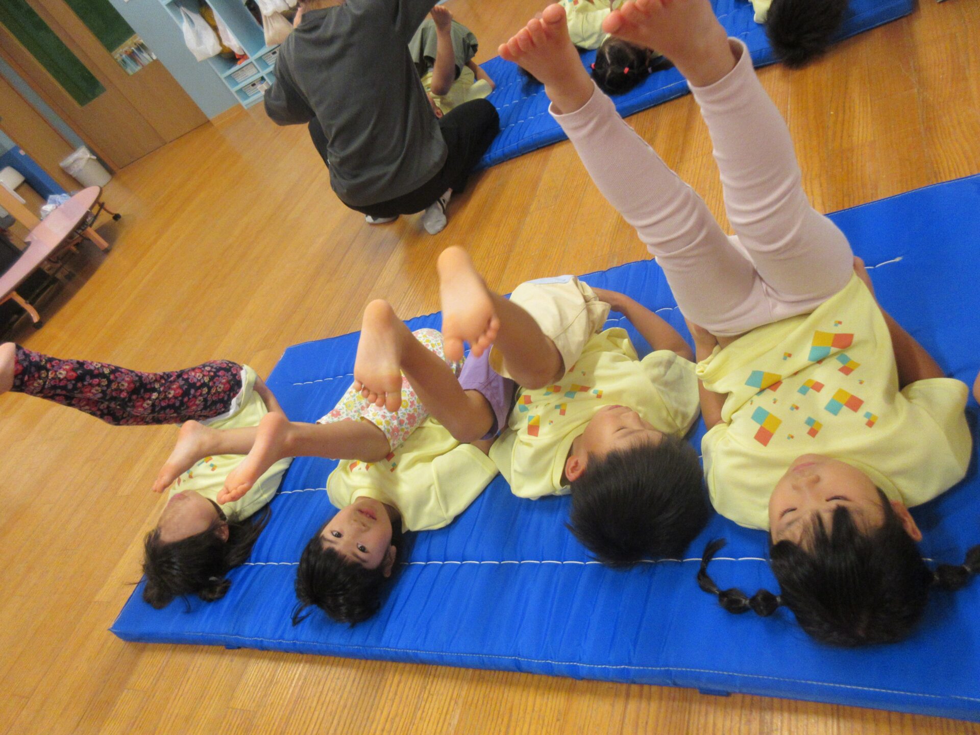 ②足を曲げて❝ダンゴムシ❞のポーズ