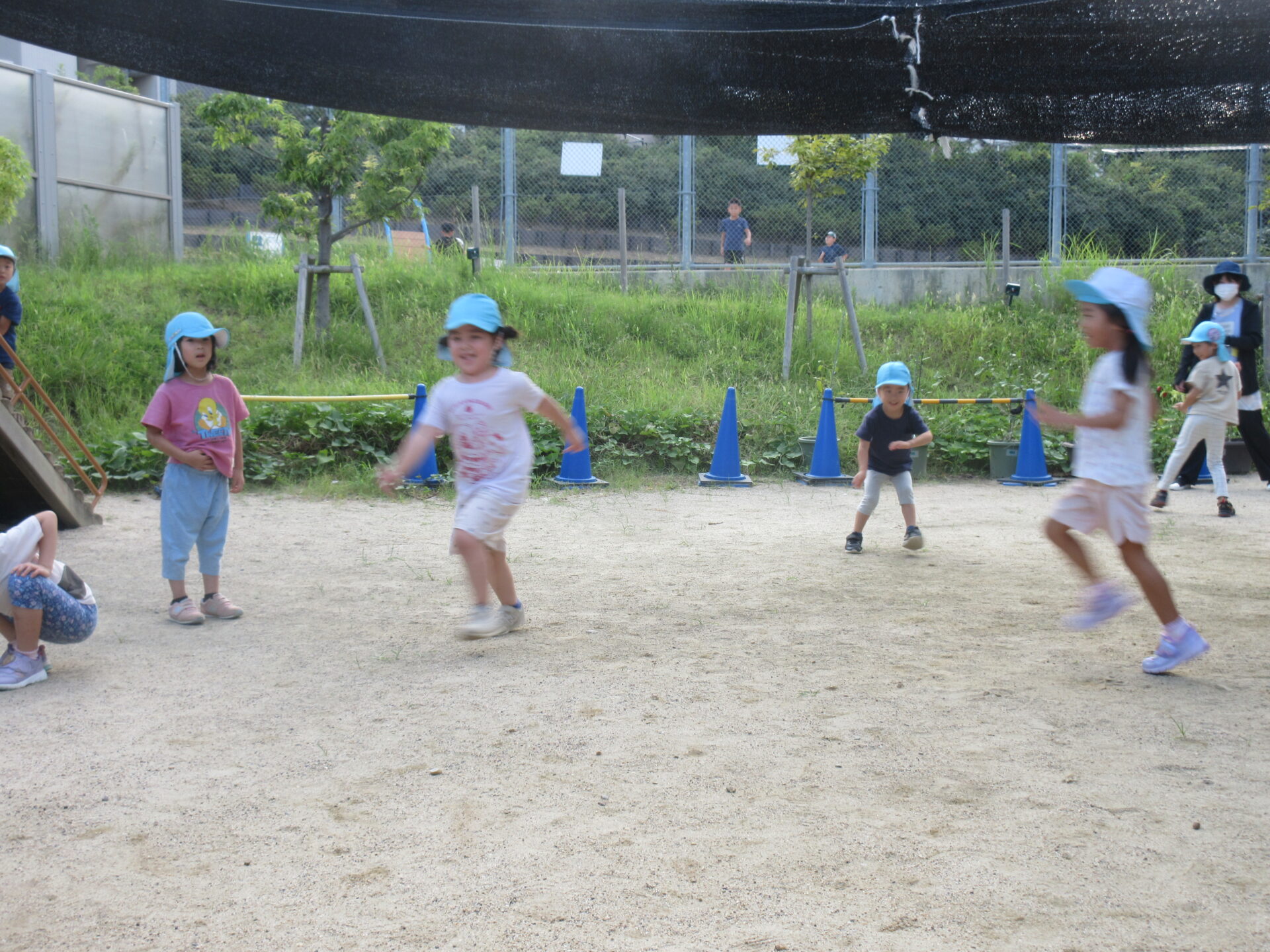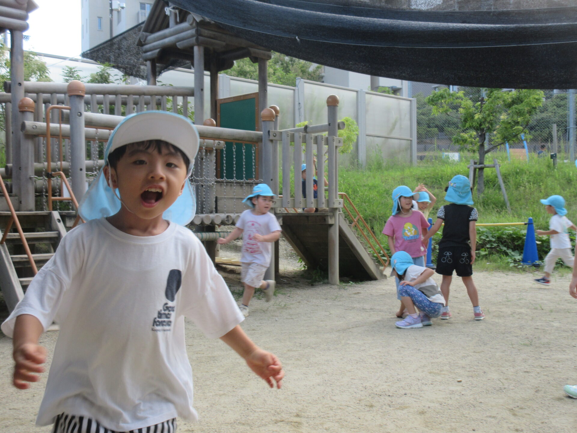園庭へ出ると