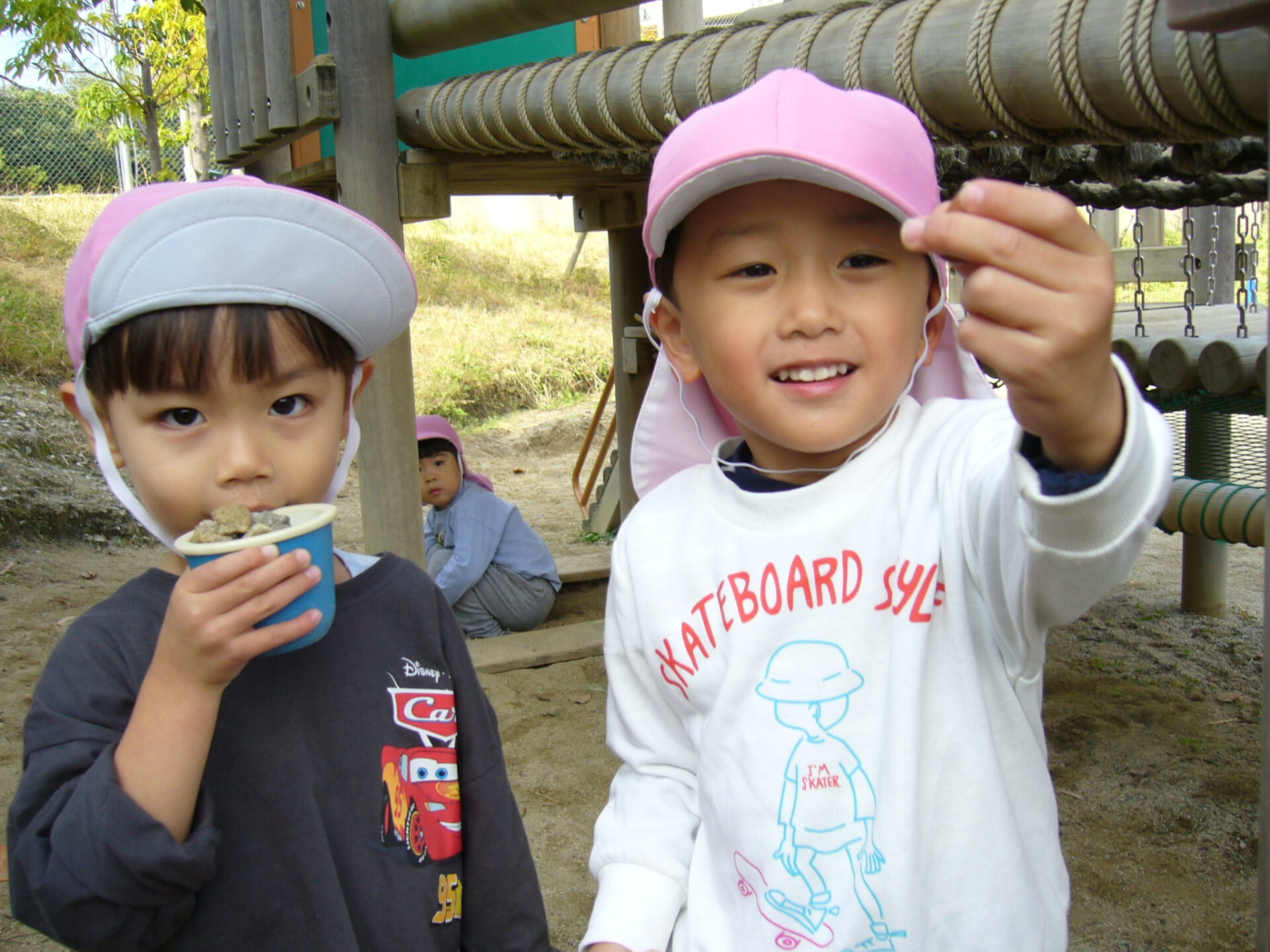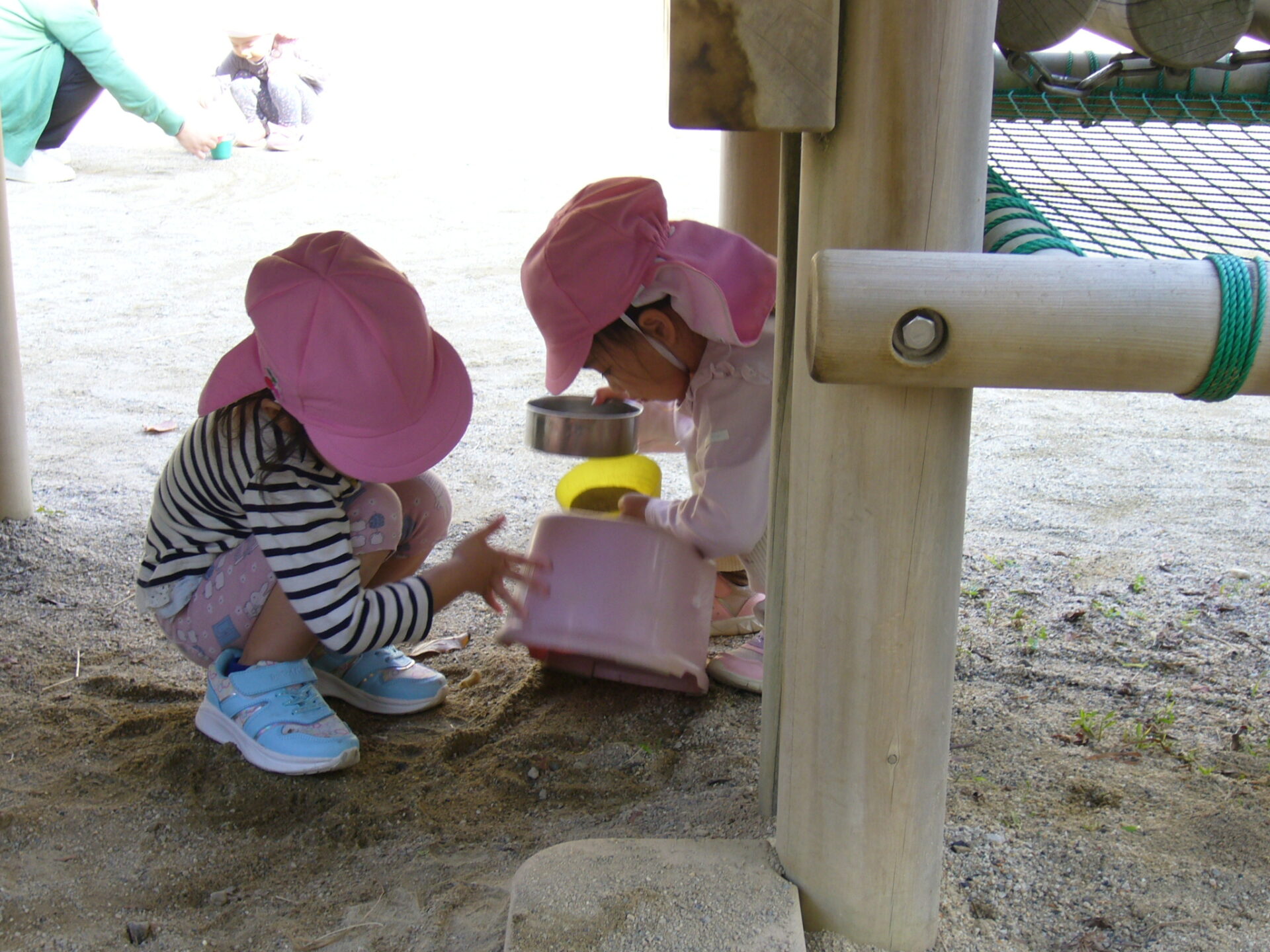 園庭のあちこちで