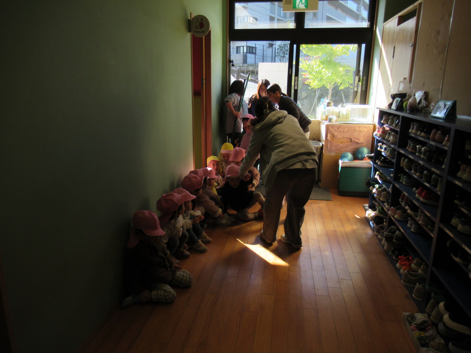2階から降りてきた5歳児達は保育士の指示もないのに、