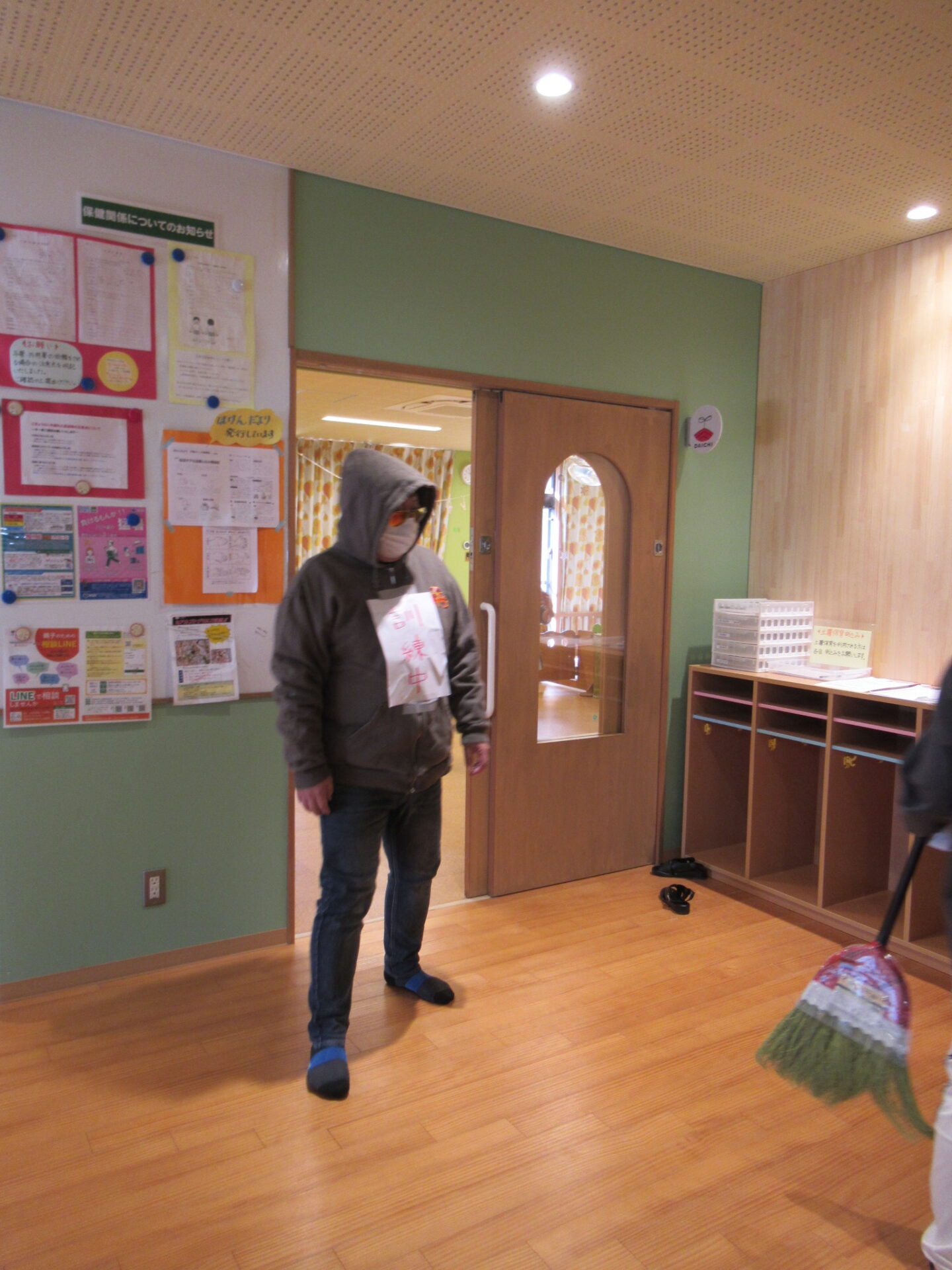 園内に合言葉で知らせます。