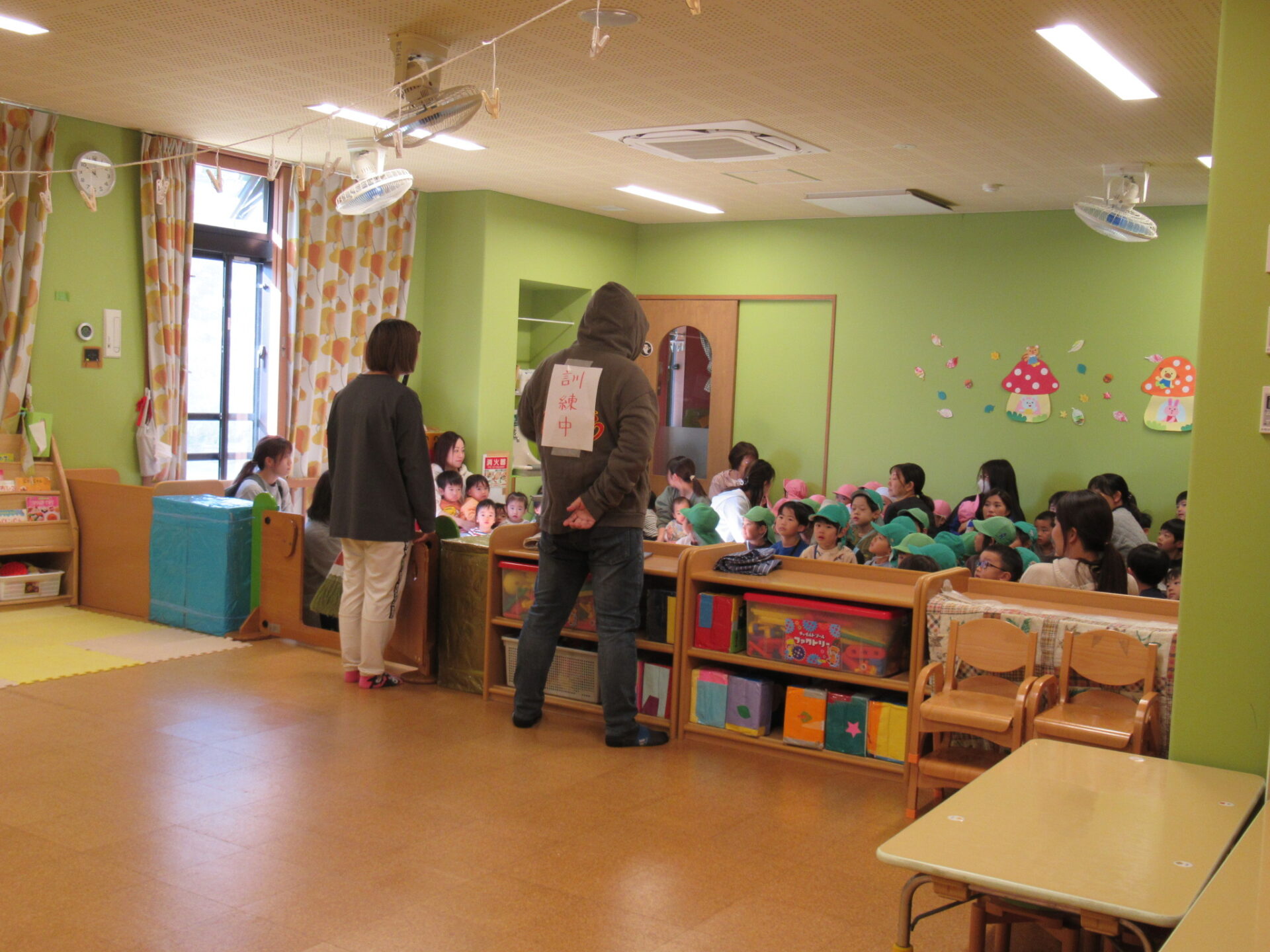 全クラスの子どもたちは1階の保育室に集まります。